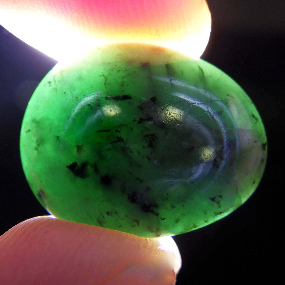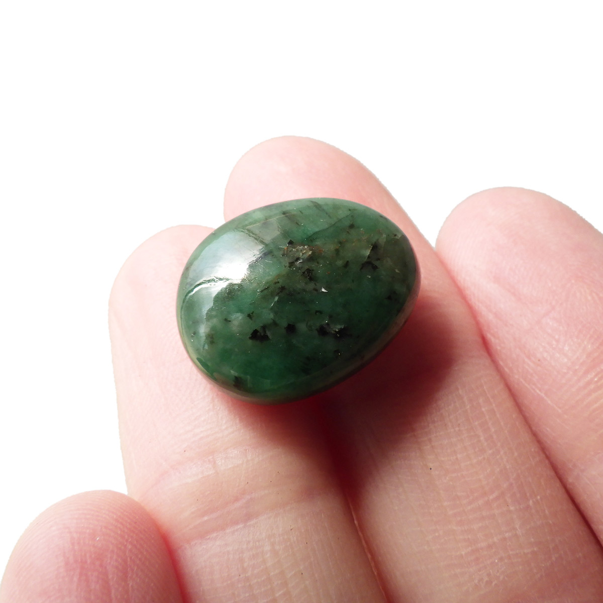 ブラジル産、AAA天然エメラルドのタンブルです。世界三大宝石のひとつとして名高いエメラルドですが、宝石としてはコロンビア産が有名です。 今回ご用意したエメラルドは、ブラジル産のものです。コロンビア産の明るく爽やかなライトグリーンと比較して、ブラジル産のエメラルドは主張の強いグリーンが特徴といえます。グリーンのエメラルドはベリル系鉱物の中でも産出量が極端に少ない鉱物といわれています。