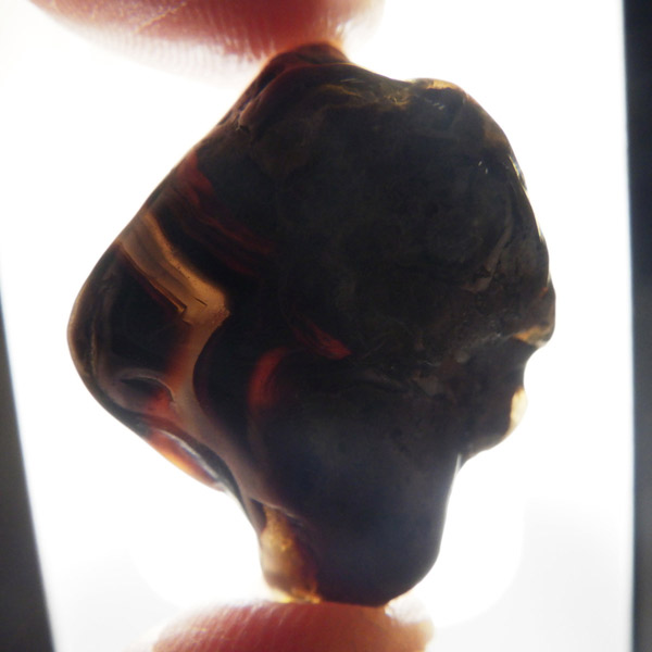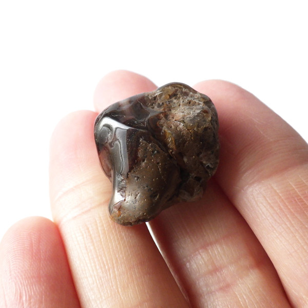 メキシコ産のファイヤーアゲート、タンブルです。ファイヤーアゲートはその名の通り、炎の揺らぎを思わせるオレンジのグラデーションが特徴的な石です。このオレンジはリモナイトによるものといわれております。光に透かすと透明部分とオレンジ部分のコントラストがとても美しいです。