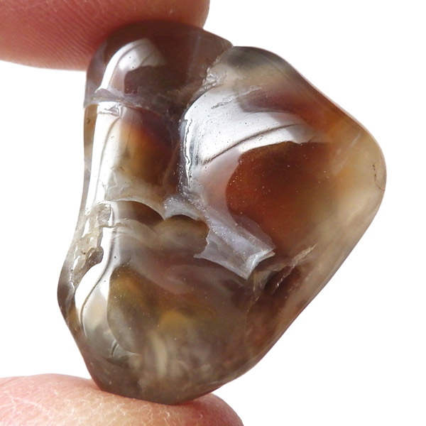 メキシコ産のファイヤーアゲート、タンブルです。ファイヤーアゲートはその名の通り、炎の揺らぎを思わせるオレンジのグラデーションが特徴的な石です。このオレンジはリモナイトによるものといわれております。光に透かすと透明部分とオレンジ部分のコントラストがとても美しいです。
