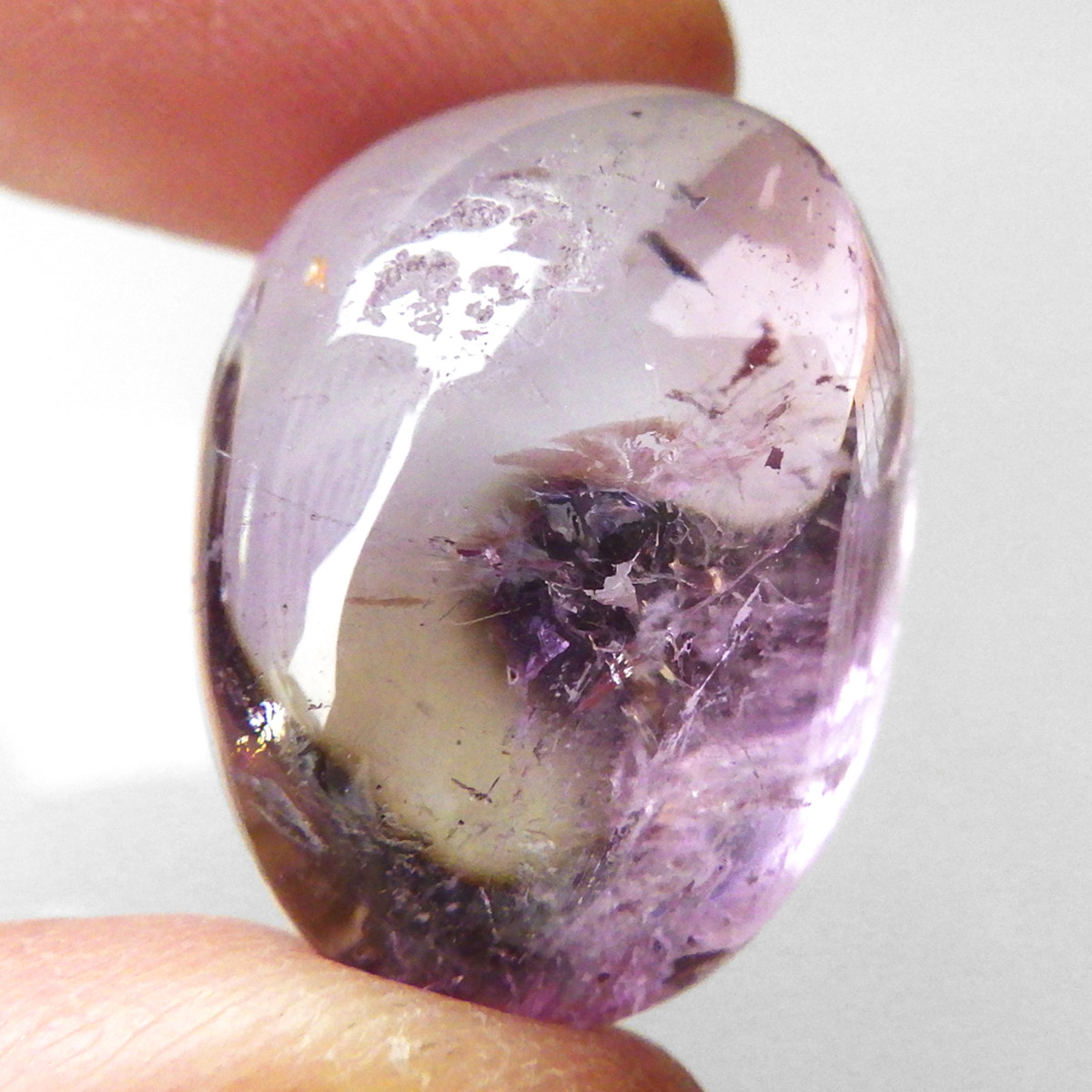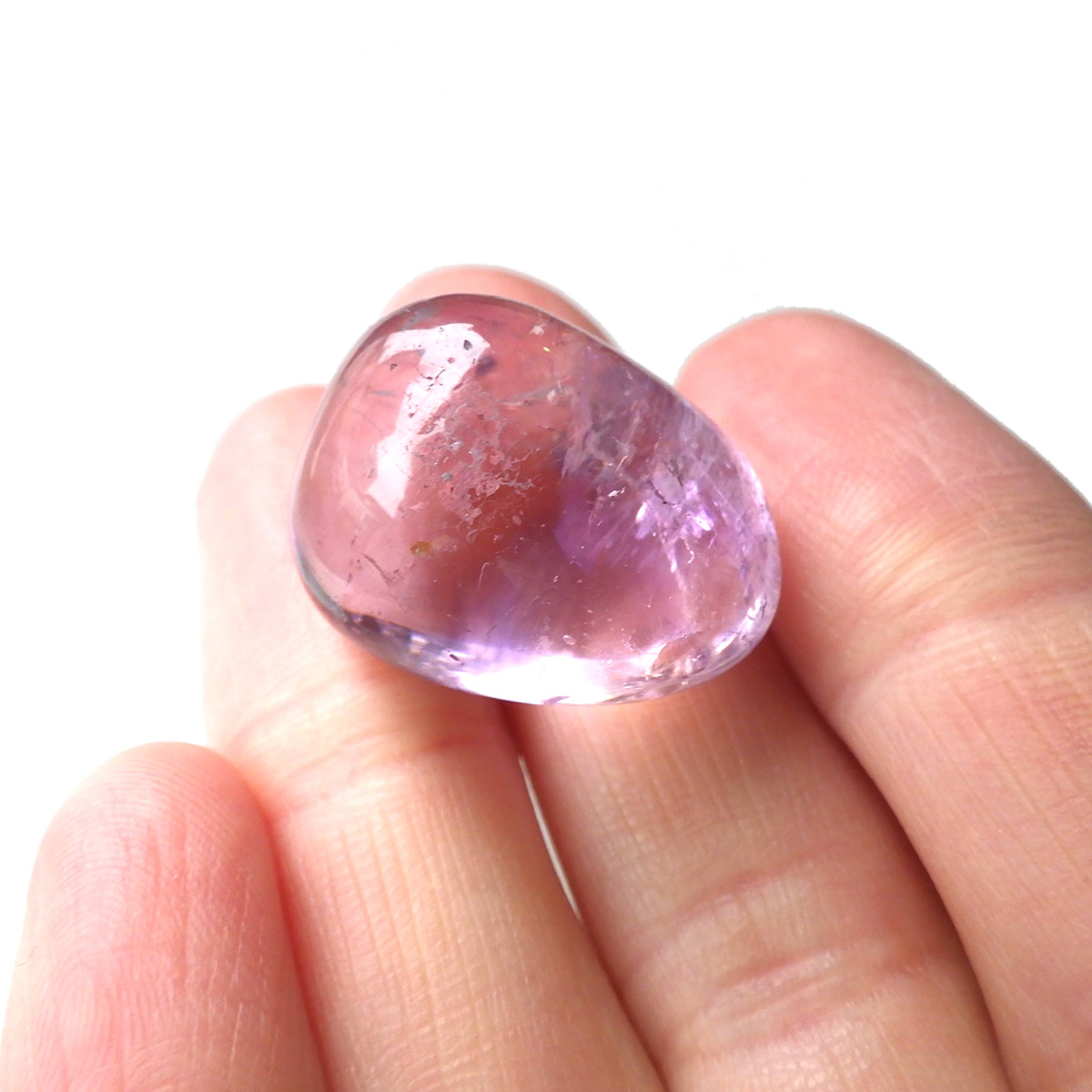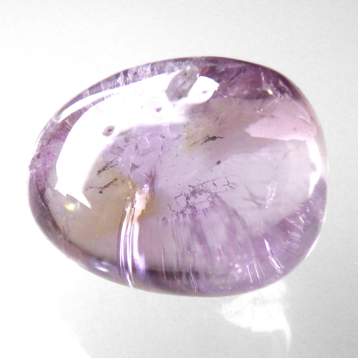ボリビア産のAAAアメトリン、タンブルです。アメトリンはアメジストとシトリンが混ざり合った石です。天然のアメトリンは極々限定された条件下でしか生成されません。透明度も抜群で、濃いアメジストとシトリンのカラーが大変美しいです。水晶の透明部分も見られ、透明~パープル~イエロー~へのグラデーションは、まさに息を飲むほど美しいです。また、アメトリンを照らす光の種類や、タンブルの角度によって、濃く見えたり薄く見えたり、青っぽく見えたり赤っぽく見えたり、見ていて飽きることがありません。アメジストとシトリンの二つの顔を併せ持った魅力的な水晶です。