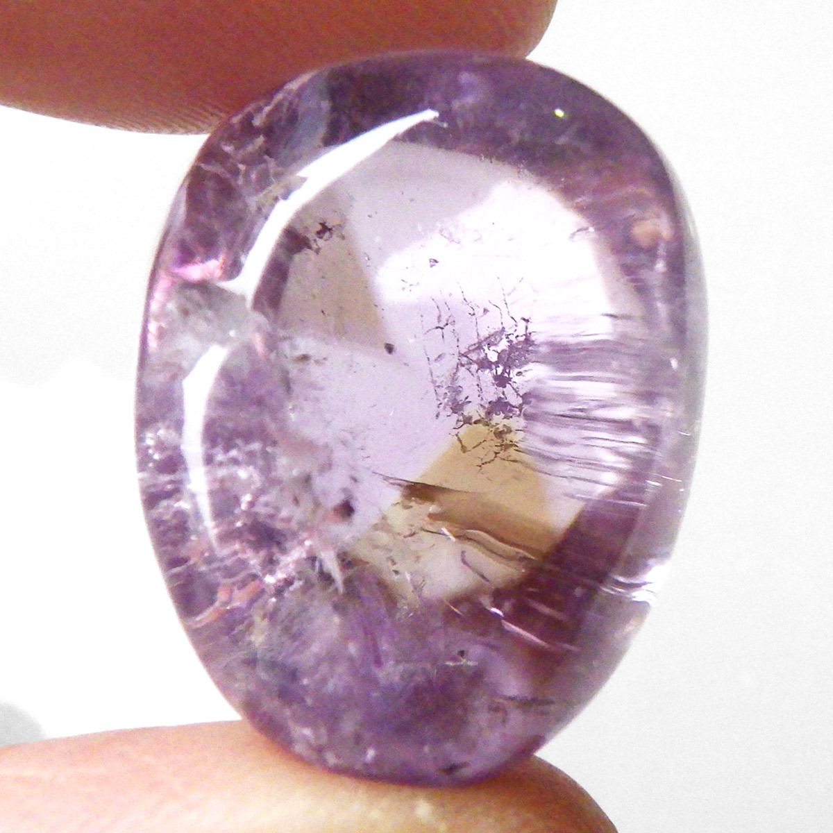 アメトリンはアメジストとシトリンが混ざり合った、 非常に魅力的な色彩を持つ石です。アメジストとシトリンは非常に理想的なコンビネーションの石であり、アメトリンはその調和を完全に体現しています。シトリンの持つ循環のエネルギーとアメジストの内観、 調和のエネルギーを完全に統合して自分自身の能力を最高に引き出す助けとなる石といわれています。