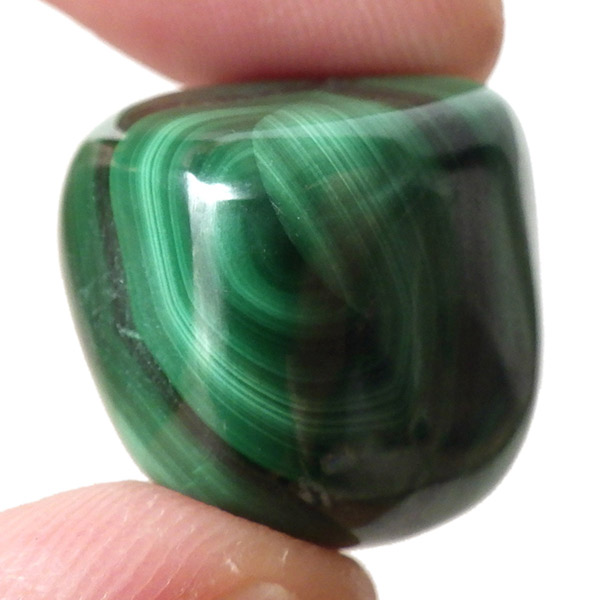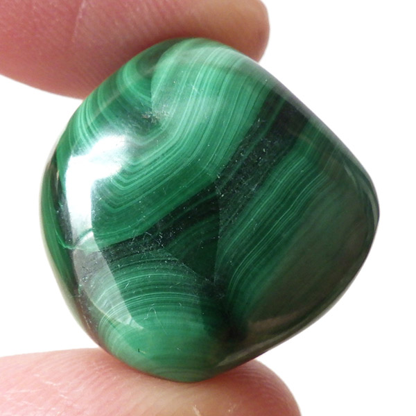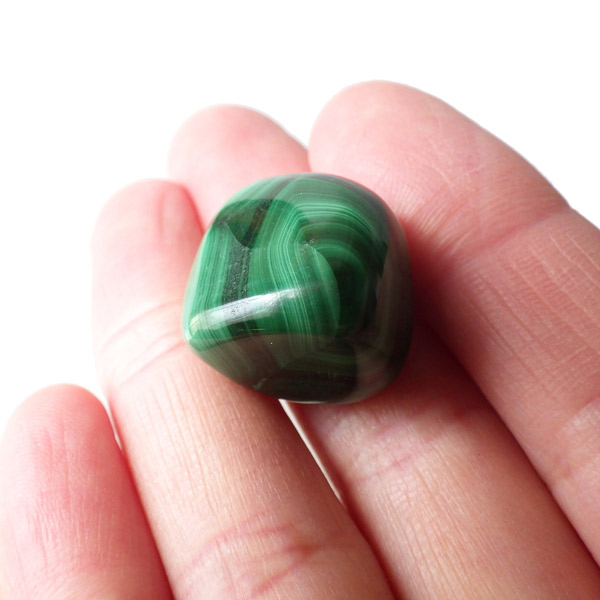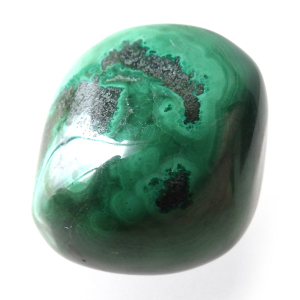 コンゴ産のマラカイト、タンブルです。濃いグリーンカラーに独特の模様を持つマラカイト。 「マラカイトグリーン」という色名になっているほど、特徴的で美しい緑色です。 マラカイトの産地はアメリカ・ロシア・コンゴ・ザンビアなどですが、中でもコンゴ産のマラカイトは非常に美しいものが採れるため、コレクターからも支持されています。