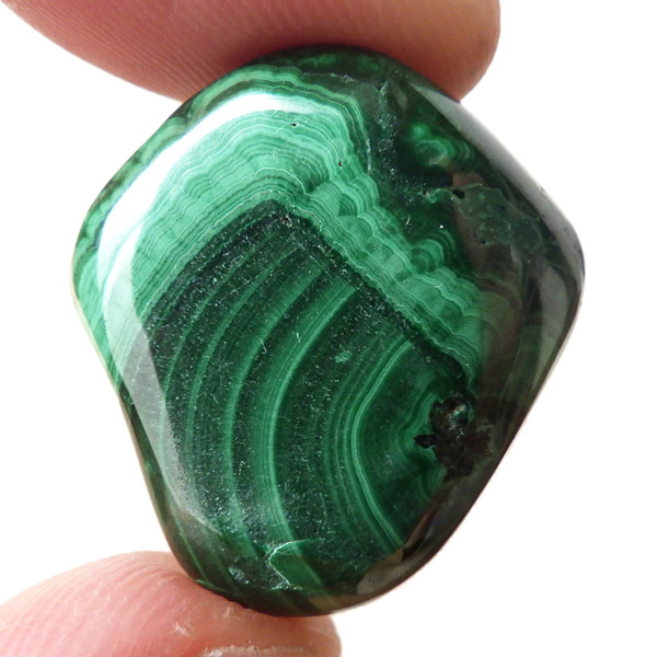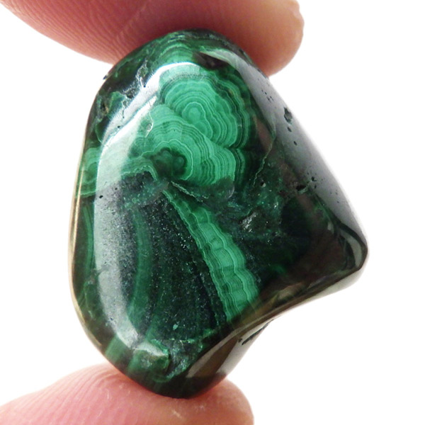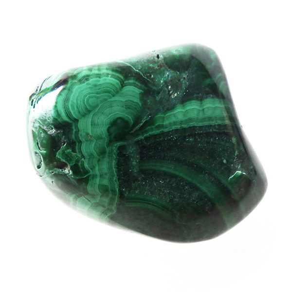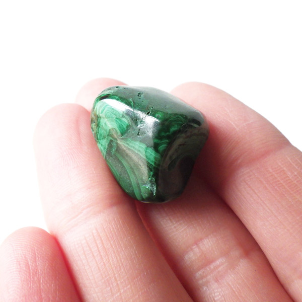コンゴ産のマラカイト、タンブルです。濃いグリーンカラーに独特の模様を持つマラカイト。 「マラカイトグリーン」という色名になっているほど、特徴的で美しい緑色です。 マラカイトの産地はアメリカ・ロシア・コンゴ・ザンビアなどですが、中でもコンゴ産のマラカイトは非常に美しいものが採れるため、コレクターからも支持されています。
