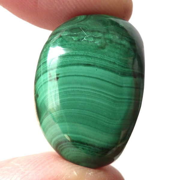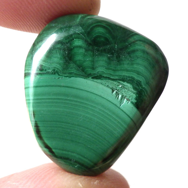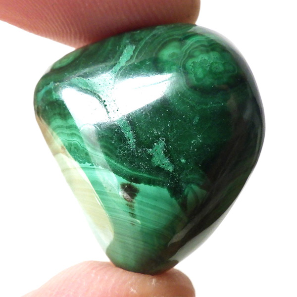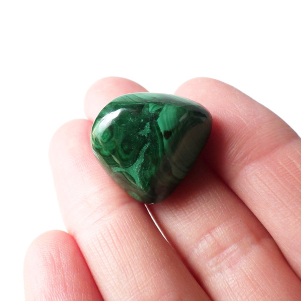 コンゴ産のマラカイト、タンブルです。濃いグリーンカラーに独特の模様を持つマラカイト。 「マラカイトグリーン」という色名になっているほど、特徴的で美しい緑色です。 マラカイトの産地はアメリカ・ロシア・コンゴ・ザンビアなどですが、中でもコンゴ産のマラカイトは非常に美しいものが採れるため、コレクターからも支持されています。
