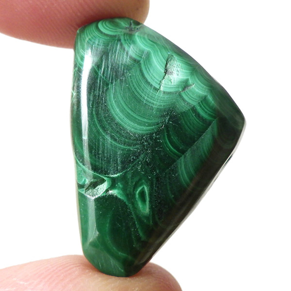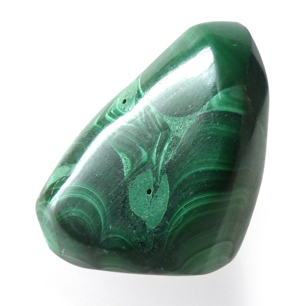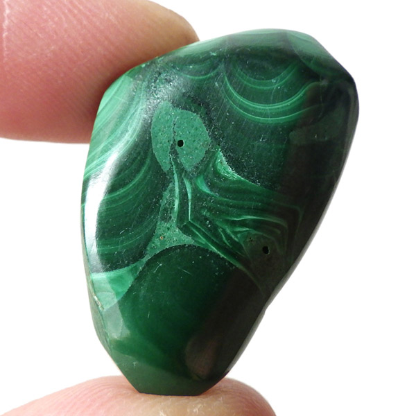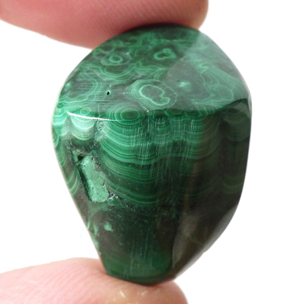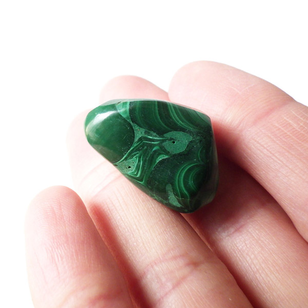 コンゴ産のマラカイト、タンブルです。濃いグリーンカラーに独特の模様を持つマラカイト。 「マラカイトグリーン」という色名になっているほど、特徴的で美しい緑色です。 マラカイトの産地はアメリカ・ロシア・コンゴ・ザンビアなどですが、中でもコンゴ産のマラカイトは非常に美しいものが採れるため、コレクターからも支持されています。