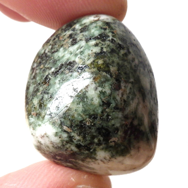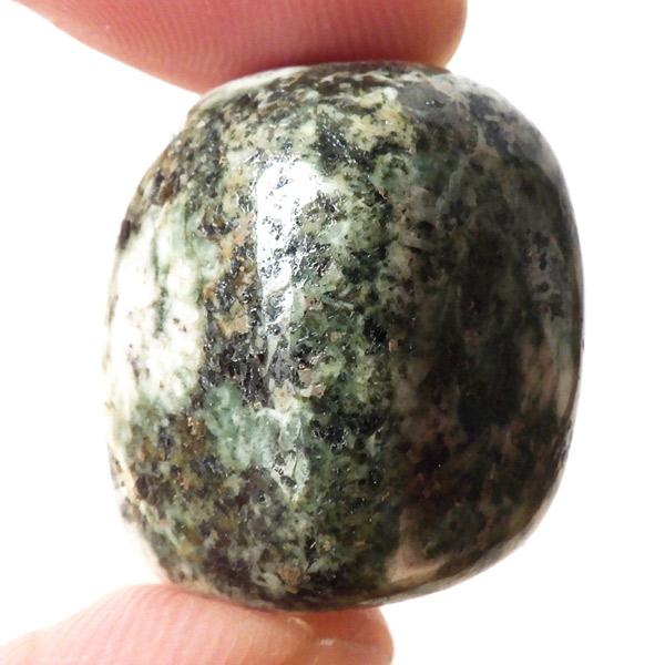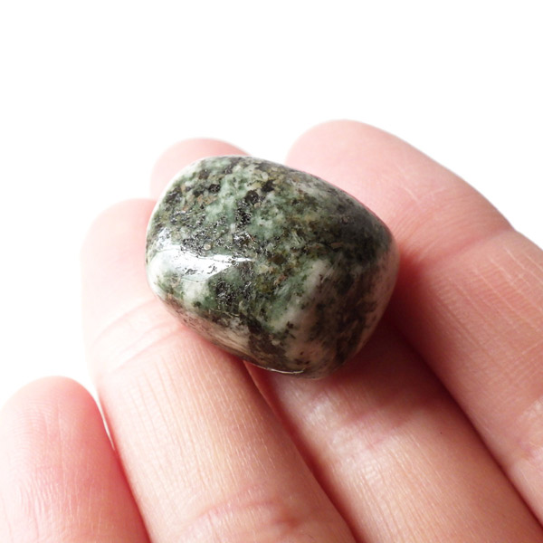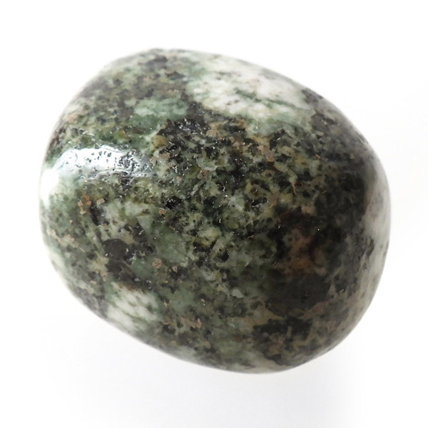 イギリス産プレセリブルーストーン、タンブルです。プレセリブルーストーン、別名「ストーンヘンジの石」の通り、イギリスにある世界遺産「ストーンヘンジ」建造に使用されたパワーストーンです。色味は灰色や黒っぽい濃い緑。ドレライトという鉱物の一種で、イギリスのペンブロークシャーのプレセリ丘陵のある場所でのみ採掘される希少な石です。その産出は世界で唯一この場所だけで、この地域で取れたドレライトだけを「プレセリブルーストーン」と呼べるということです。プレセリブルーストーンの採掘は現在、Preseli Bluestone Limited. だけが政府から認められています。そして、学術的にも 、古代のロマンや神秘としても、この石は多くの人を魅了しています。