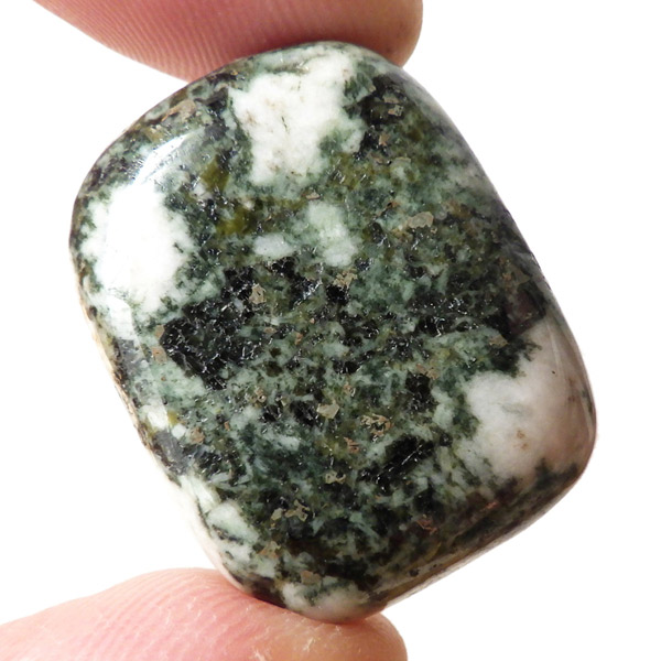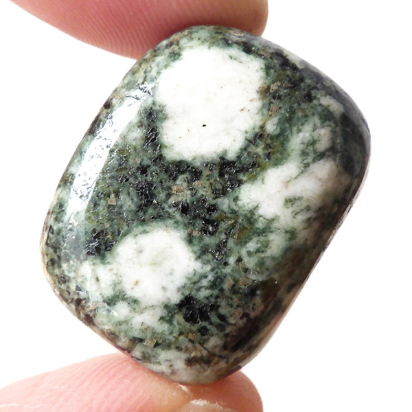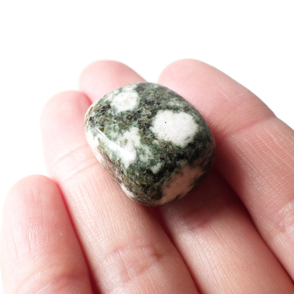 イギリス産プレセリブルーストーン、タンブルです。プレセリブルーストーン、別名「ストーンヘンジの石」の通り、イギリスにある世界遺産「ストーンヘンジ」建造に使用されたパワーストーンです。色味は灰色や黒っぽい濃い緑。ドレライトという鉱物の一種で、イギリスのペンブロークシャーのプレセリ丘陵のある場所でのみ採掘される希少な石です。その産出は世界で唯一この場所だけで、この地域で取れたドレライトだけを「プレセリブルーストーン」と呼べるということです。プレセリブルーストーンの採掘は現在、Preseli Bluestone Limited. だけが政府から認められています。そして、学術的にも 、古代のロマンや神秘としても、この石は多くの人を魅了しています。