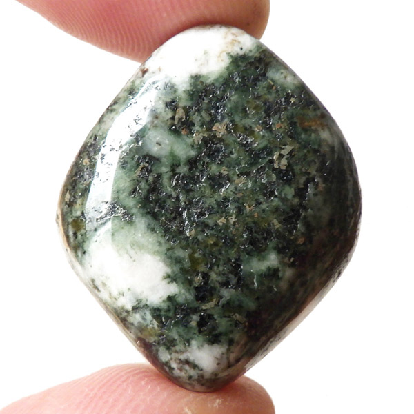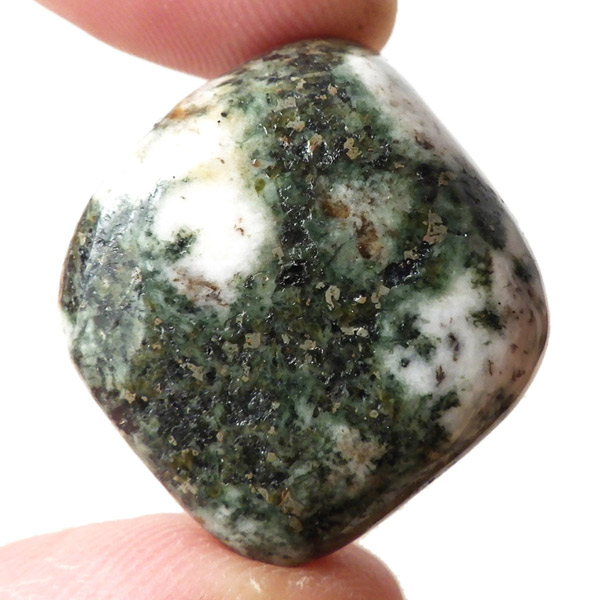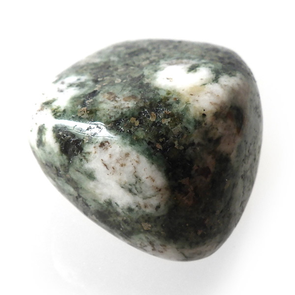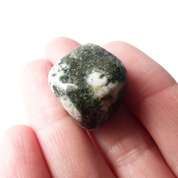 イギリス産プレセリブルーストーン、タンブルです。プレセリブルーストーン、別名「ストーンヘンジの石」の通り、イギリスにある世界遺産「ストーンヘンジ」建造に使用されたパワーストーンです。色味は灰色や黒っぽい濃い緑。ドレライトという鉱物の一種で、イギリスのペンブロークシャーのプレセリ丘陵のある場所でのみ採掘される希少な石です。その産出は世界で唯一この場所だけで、この地域で取れたドレライトだけを「プレセリブルーストーン」と呼べるということです。プレセリブルーストーンの採掘は現在、Preseli Bluestone Limited. だけが政府から認められています。そして、学術的にも 、古代のロマンや神秘としても、この石は多くの人を魅了しています。
