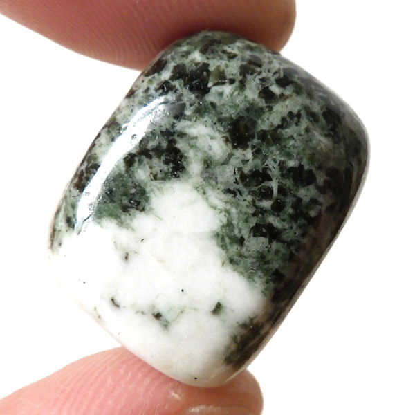 イギリス産プレセリブルーストーン、タンブルです。プレセリブルーストーン、別名「ストーンヘンジの石」の通り、イギリスにある世界遺産「ストーンヘンジ」建造に使用されたパワーストーンです。色味は灰色や黒っぽい濃い緑。ドレライトという鉱物の一種で、イギリスのペンブロークシャーのプレセリ丘陵のある場所でのみ採掘される希少な石です。その産出は世界で唯一この場所だけで、この地域で取れたドレライトだけを「プレセリブルーストーン」と呼べるということです。プレセリブルーストーンの採掘は現在、Preseli Bluestone Limited. だけが政府から認められています。そして、学術的にも 、古代のロマンや神秘としても、この石は多くの人を魅了しています。