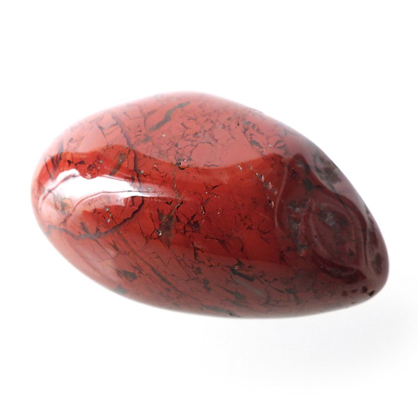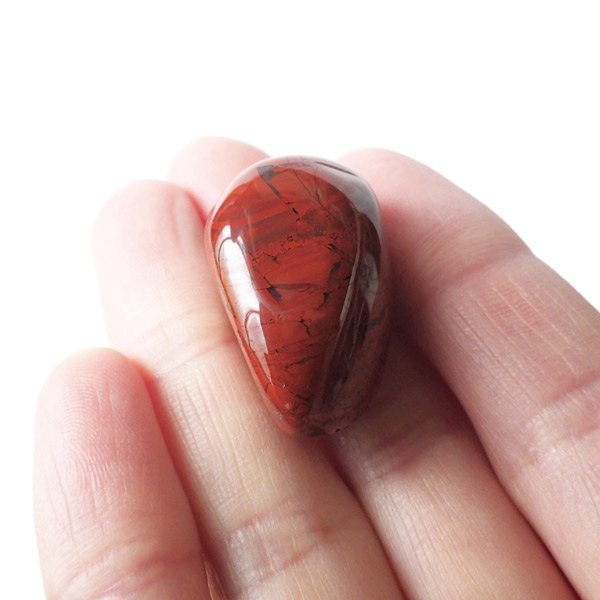 ブラジル産のポピージャスパー、タンブルです。 ジャスパーは、様々な不純物を含んだ石英の総称で、含まれる不純物によって、赤、緑、黄、黒、褐色など、多くの色や模様を持ちます。古くから「聖なる石」と崇められてきた鉱物で、太陽崇拝のインカ帝国では、レッドジャスパーが生命の源の石としてまつりに使用されていたそうです。このポピージャスパーは鮮やかで艶があり、石英によって独特の模様が楽しめます。