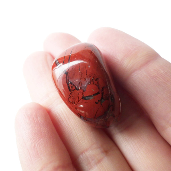 ブラジル産のポピージャスパー、タンブルです。 ジャスパーは、様々な不純物を含んだ石英の総称で、含まれる不純物によって、赤、緑、黄、黒、褐色など、多くの色や模様を持ちます。古くから「聖なる石」と崇められてきた鉱物で、太陽崇拝のインカ帝国では、レッドジャスパーが生命の源の石としてまつりに使用されていたそうです。このポピージャスパーは鮮やかで艶があり、石英によって独特の模様が楽しめます。