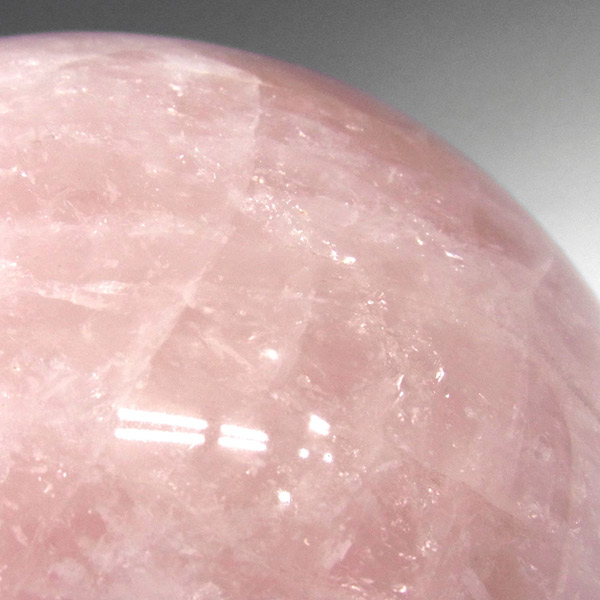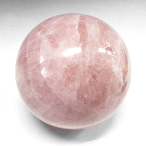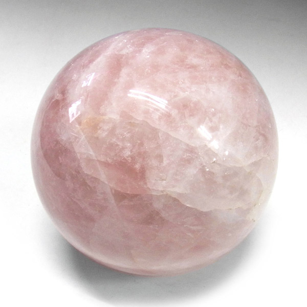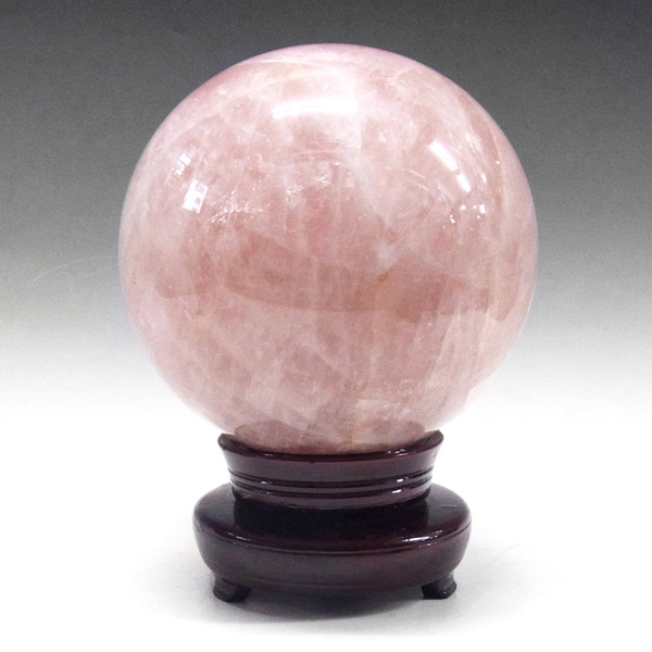 ローズクォーツの球です。直径は約20cmと大玉でやさしい色合いのピンクが特徴的、自然の神秘に心が癒されます。