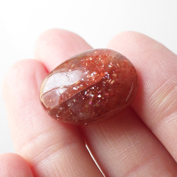 サンストーンは、自信の無い人やコンプレックスの強い人に対して、冷えた心を太陽の光が温めてくれるように、自信を取り戻す事ができます。安心感・自己肯定感を与えてくれ、苛立ちや感情の起伏を抑えてコンプレックスや心の傷が癒してくれます。 そして、心に余裕をつくり、さらに人生に対する創造性を高め、前向きに人生を楽しむ事を教えてくれます。 精神的に自分を追い詰めやすいタイプの人にとっては、ストレスが緩和されるといわれています。