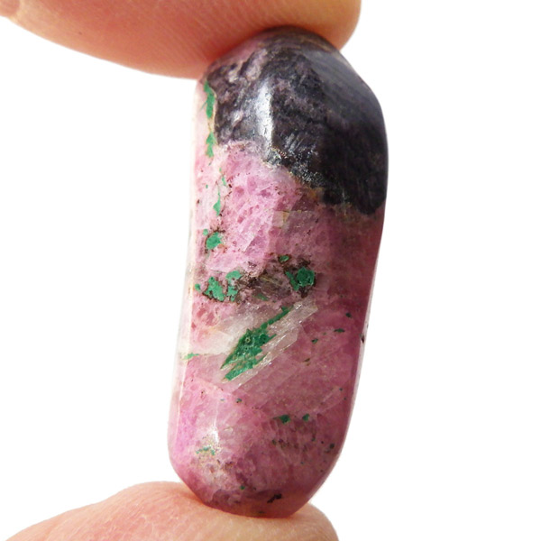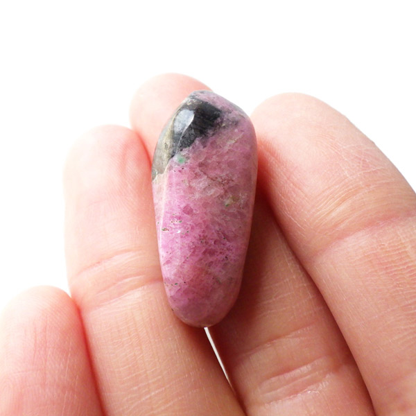 コンゴ産のコバルトカルサイト、タンブルです。コバルトカルサイトと言えば、モロッコが世界的に有名な産地ですが、コンゴ産と言えば比較的 新しい産地で ここ近年注目が高まっている新産地です。 コンゴ産の特徴はコバルト特有なビビットなピンクで、細やかな結晶はキラキラと美しく輝き、母岩を覆い尽くすように結晶しています。更に、コバルト系の鉱物にも関わらず、マラカイト・クリソコラ・パイライト・スクテルド鉱など様々な鉱物が混入するユニークなものです。これはモロッコ産にはまったく見られない特徴で、コンゴ産ならではのものといってよいでしょう。