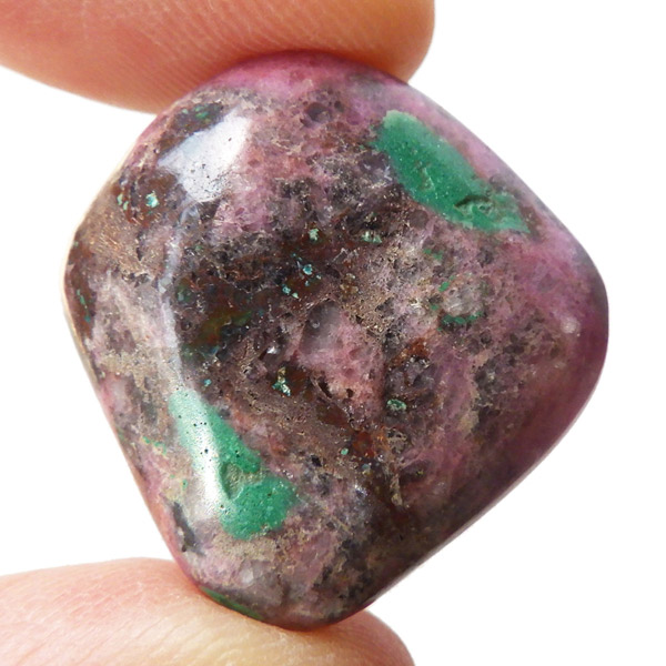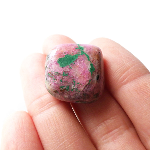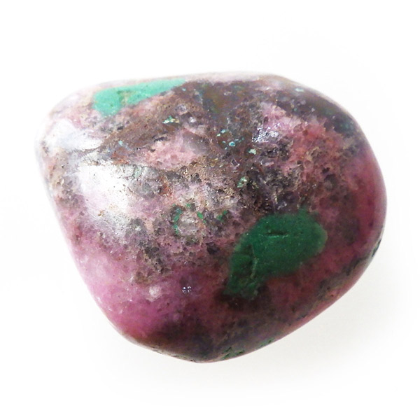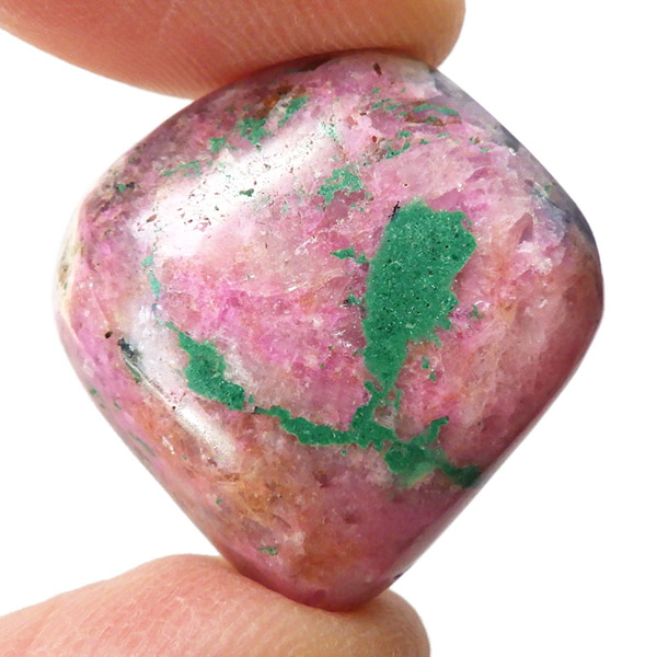 コンゴ産のコバルトカルサイト、タンブルです。コバルトカルサイトと言えば、モロッコが世界的に有名な産地ですが、コンゴ産と言えば比較的 新しい産地で ここ近年注目が高まっている新産地です。 コンゴ産の特徴はコバルト特有なビビットなピンクで、細やかな結晶はキラキラと美しく輝き、母岩を覆い尽くすように結晶しています。更に、コバルト系の鉱物にも関わらず、マラカイト・クリソコラ・パイライト・スクテルド鉱など様々な鉱物が混入するユニークなものです。これはモロッコ産にはまったく見られない特徴で、コンゴ産ならではのものといってよいでしょう。