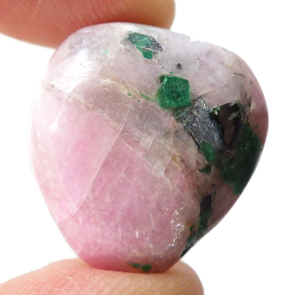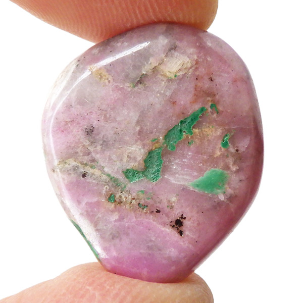 コンゴ産のコバルトカルサイト、タンブルです。コバルトカルサイトと言えば、モロッコが世界的に有名な産地ですが、コンゴ産と言えば比較的 新しい産地で ここ近年注目が高まっている新産地です。 コンゴ産の特徴はコバルト特有なビビットなピンクで、細やかな結晶はキラキラと美しく輝き、母岩を覆い尽くすように結晶しています。更に、コバルト系の鉱物にも関わらず、マラカイト・クリソコラ・パイライト・スクテルド鉱など様々な鉱物が混入するユニークなものです。これはモロッコ産にはまったく見られない特徴で、コンゴ産ならではのものといってよいでしょう。