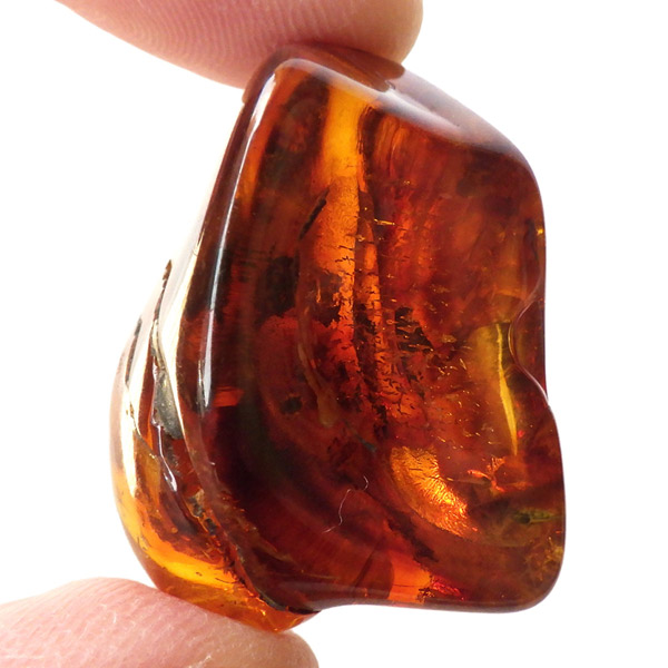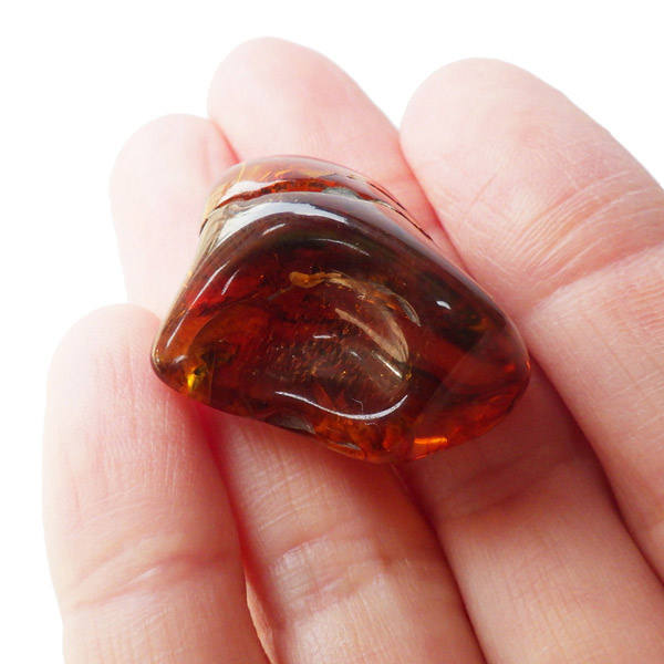 バルト海産のアンバー(琥珀)、タンブルです。 松柏類の樹脂が3000万年以上の時を経て化石化したもので、バルト海沿岸地方で多く産出し、紀元前2000年頃、ヨーロッパではすでに「アンバールート」という交易ルートがあったほど人気があったようです。 アンバーという名前は、古代アラビア語の「アンバール(海に漂うもの)」が由来です。樹脂を含む樹木が地殻変動などで海底に沈み、化石へと熟成され海岸に流れ着いたからで、「シー・アンバー」と呼ばれます。色が綺麗なことはもちろん光を通しても綺麗で美しいです。