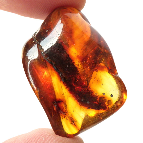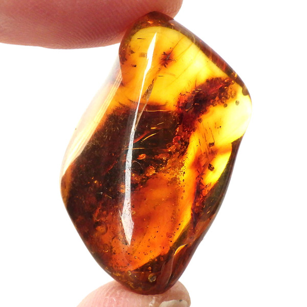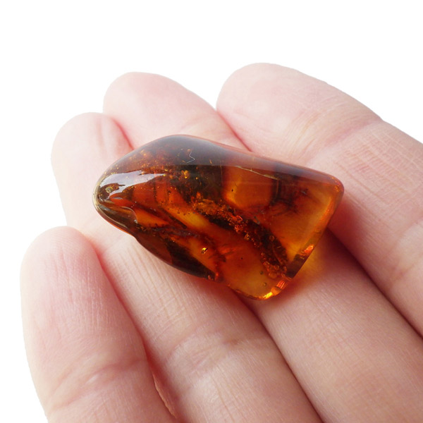 バルト海産のアンバー(琥珀)、タンブルです。 松柏類の樹脂が3000万年以上の時を経て化石化したもので、バルト海沿岸地方で多く産出し、紀元前2000年頃、ヨーロッパではすでに「アンバールート」という交易ルートがあったほど人気があったようです。 アンバーという名前は、古代アラビア語の「アンバール(海に漂うもの)」が由来です。樹脂を含む樹木が地殻変動などで海底に沈み、化石へと熟成され海岸に流れ着いたからで、「シー・アンバー」と呼ばれます。色が綺麗なことはもちろん光を通しても綺麗で美しいです。