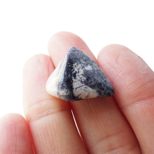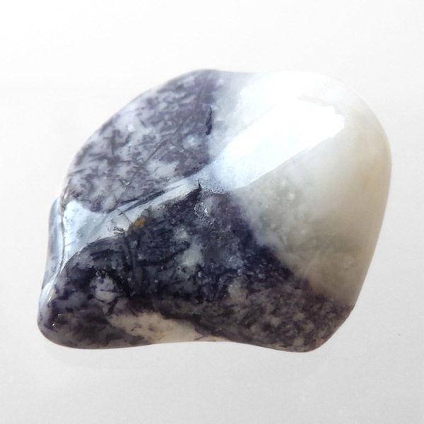アメリカ・ユタ州産のティファニーストーン、タンブルです。ティファニーストーンは、アメリカ・ユタ州にあるトーマス山脈周辺でのみ産出される、大変希少な石です。オパール化したフローライトを主体にベリル・カルセドニー・カルサイトなどが様々な鉱物が混ざりあった混合石です。カラーも、白・紫・ピンクなどが複雑な模様を織りなしています。この名前はこの石の模様がティファニー創始者子息ルイス・カムフォート・ティファニーの制作したステンドグラス作品に似ていることから由来します。また、「オパライズド・フローライト」の名前でも知られ、主にフローライトがオパール化・石化したものです。