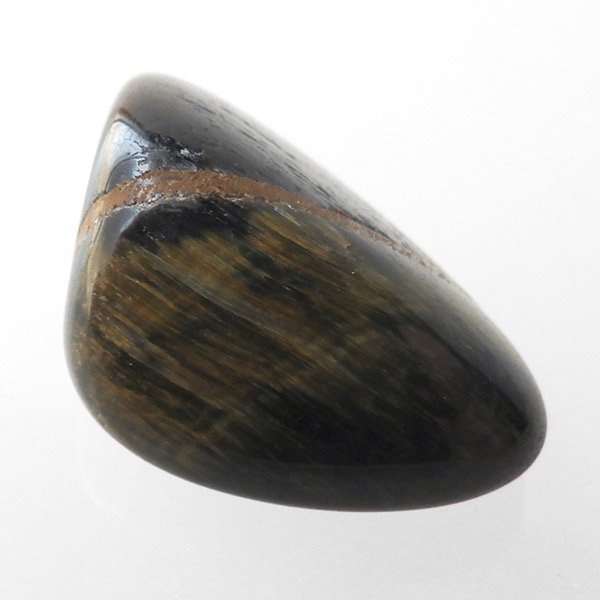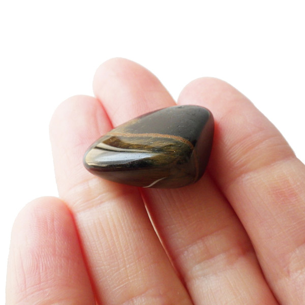 ブラジル産のウルフアイ、タンブルです。ウルフアイまたはウルフズアイとして表記されています。ウルフアイは流通名でホークスアイからタイガーアイに変化している間の両石の一面が同時に見られる石のことを呼んでいます。おおまかにホークスアイに分類されている場合もあるかと思います。色味でいえば青から黄色に変化する途中のものをウルフアイと呼びます。きれいに目が出ている特別なものを厳選してご紹介しております。ライトなどで照らすと、よりキラリとキャッツアイ効果が分かりやすく輝くかと思います。ウルフアイの名前の通り、かっこよく光り輝く素敵な石です。