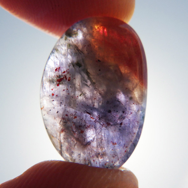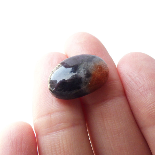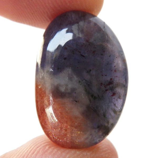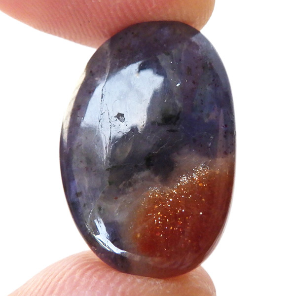 サンストーンの部分はもちろん、アイオライトの部分も内包物が見られ、アベンチュレッセンス効果でキラキラと輝いて見えます。