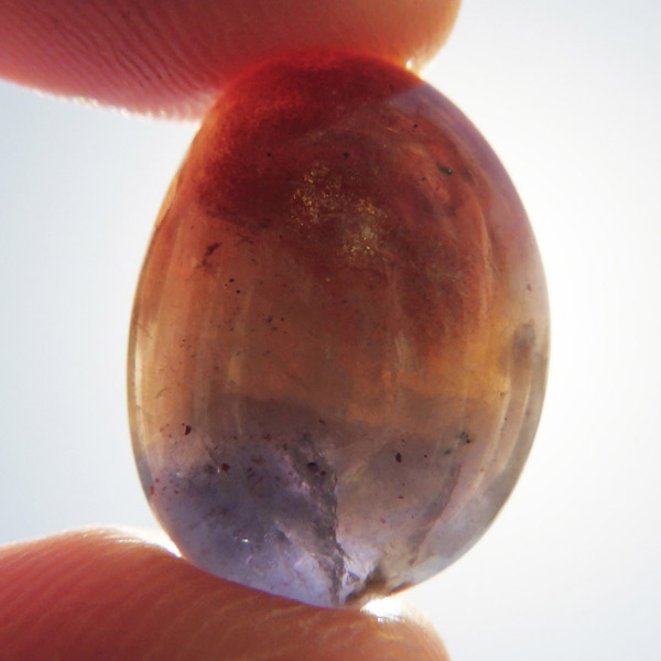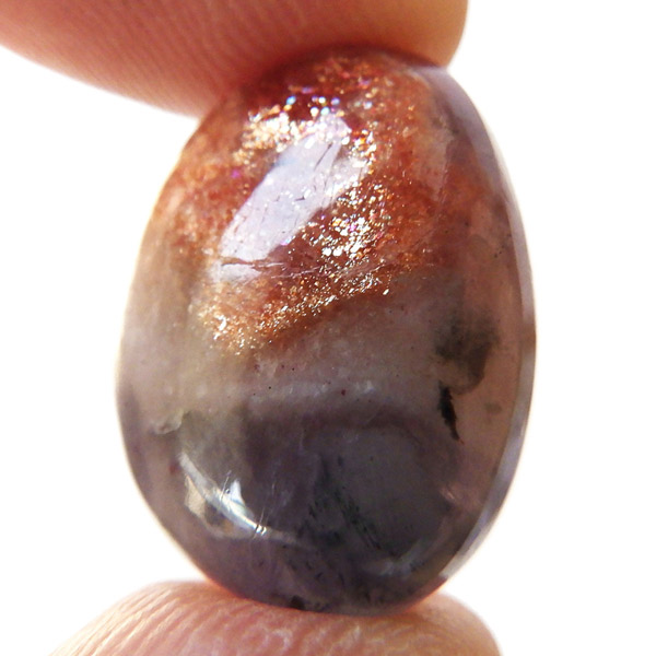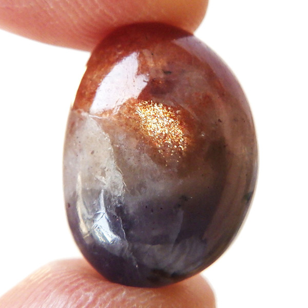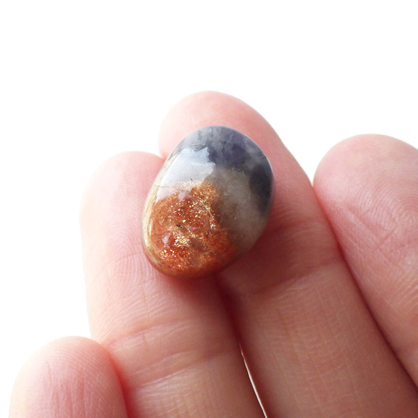 サンストーンの部分はもちろん、アイオライトの部分も内包物が見られ、アベンチュレッセンス効果でキラキラと輝いて見えます。