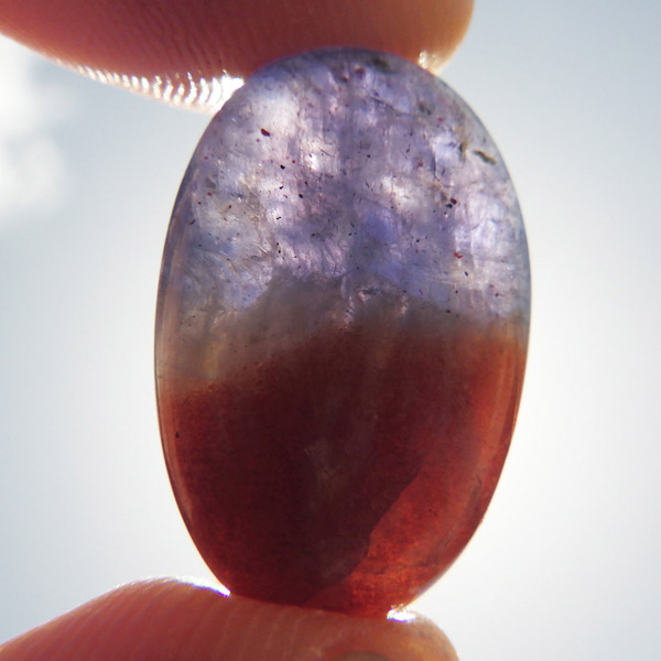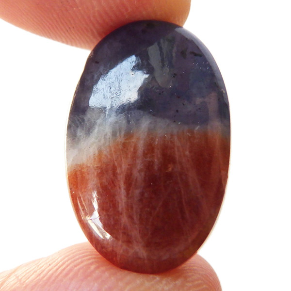 サンストーンの部分はもちろん、アイオライトの部分も内包物が見られ、アベンチュレッセンス効果でキラキラと輝いて見えます。
