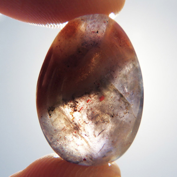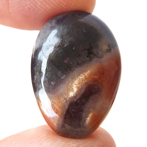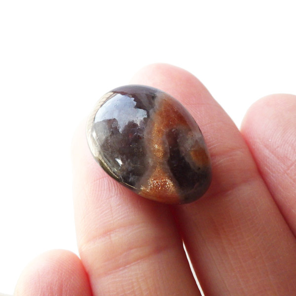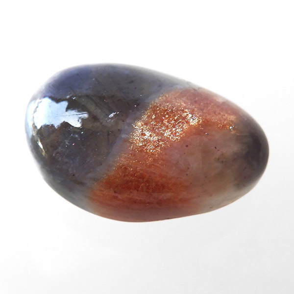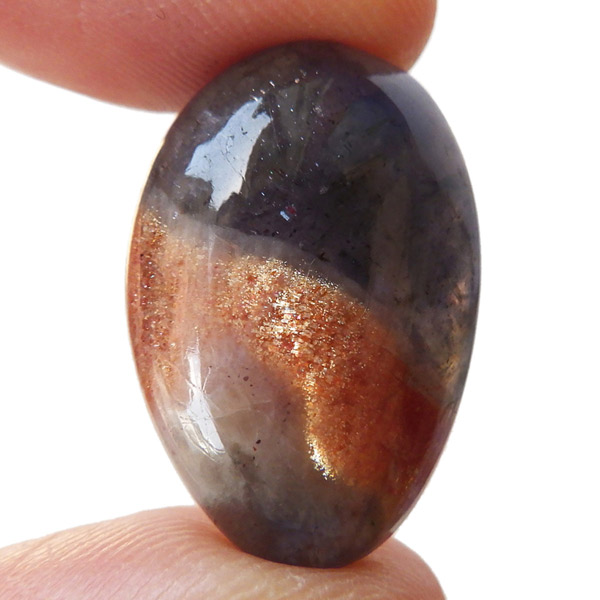 サンストーンの部分はもちろん、アイオライトの部分も内包物が見られ、アベンチュレッセンス効果でキラキラと輝いて見えます。