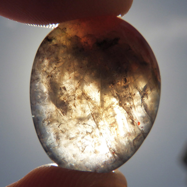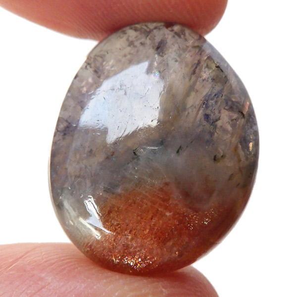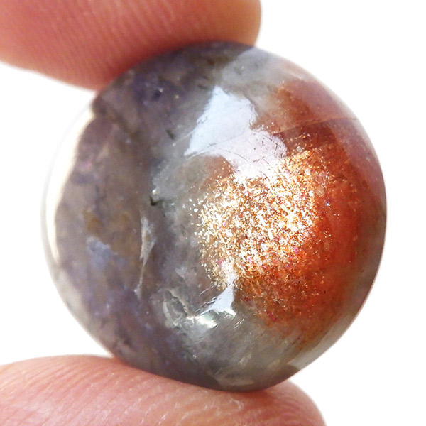 サンストーンの部分はもちろん、アイオライトの部分も内包物が見られ、アベンチュレッセンス効果でキラキラと輝いて見えます。