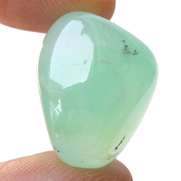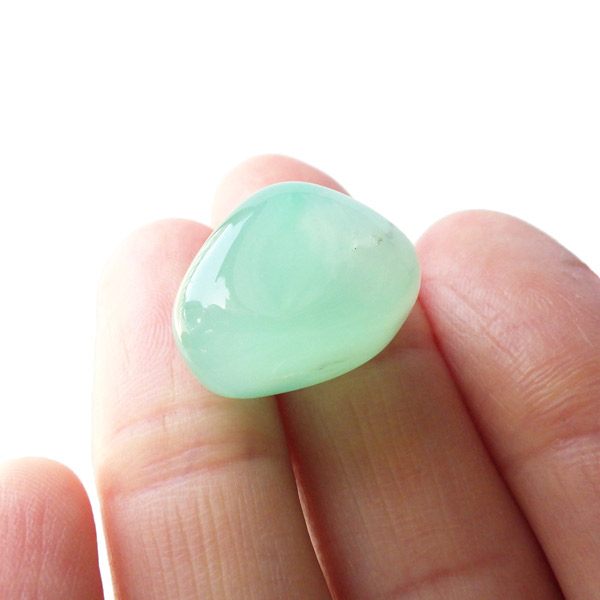 タンザニア産クリソプレーズのタンブルです。色合いがなんともきれいです。クリソプレーズは和名を「緑玉髄」といいます。カルセドニーの一種で、黄緑色や薄緑色のものをクリソプレーズと言います。カルセドニーの中で産出量がとても少ない為、カルセドニーの中で最も価値が高い石とされており、その鮮やかな色から「アップルグリーン」と呼ばれ親しまれてきました。生成は珪酸溶液中にニッケルを含む鉱物が混入し、コロイド状になって固まってできると言われています。太陽光に長時間当てると退色する恐れがあるので注意が必要です。