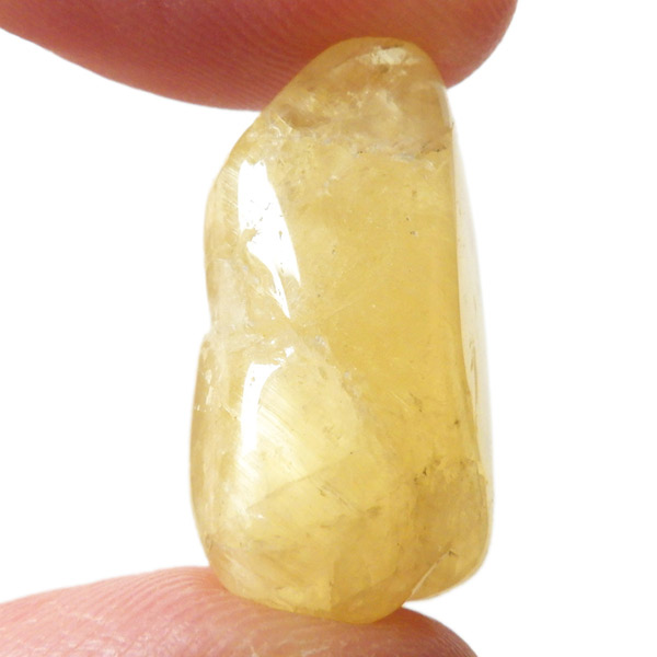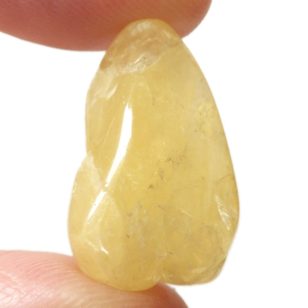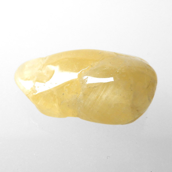 タンザニア産のゴールデンダンビュライト、タンブルです。ダンビュライトと言えば、透明度の高い結晶や、薄いピンク色の結晶がよく知られています。 光の反射が強く、屈折率が高いことから、良質な原石をカットすると水晶やトパーズよりも透明で澄んでいて、かつてダイアモンドの代用品として利用されていたこともあります。ところが、タンザニア産のダンビュライトは 明るいイエローの発色で、塊状で産するのが特徴です。