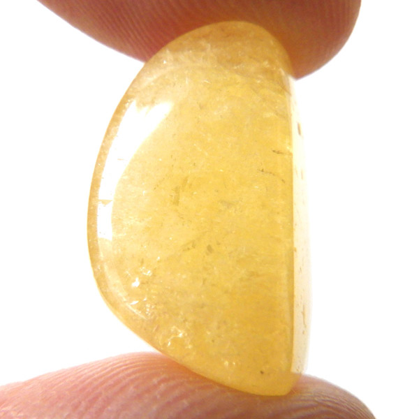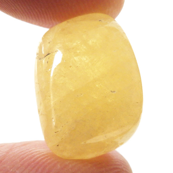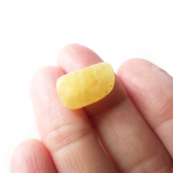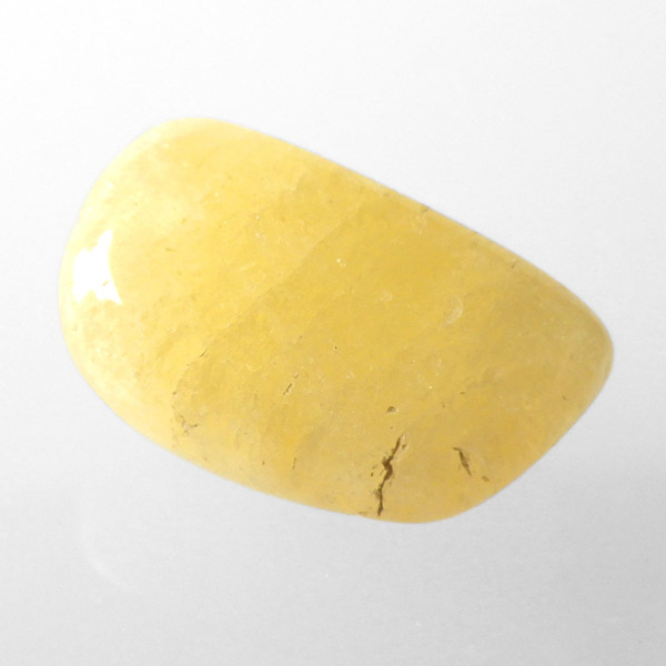 タンザニア産のゴールデンダンビュライト、タンブルです。ダンビュライトと言えば、透明度の高い結晶や、薄いピンク色の結晶がよく知られています。 光の反射が強く、屈折率が高いことから、良質な原石をカットすると水晶やトパーズよりも透明で澄んでいて、かつてダイアモンドの代用品として利用されていたこともあります。ところが、タンザニア産のダンビュライトは 明るいイエローの発色で、塊状で産するのが特徴です。