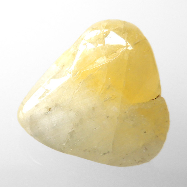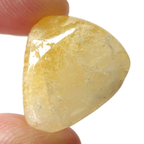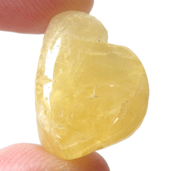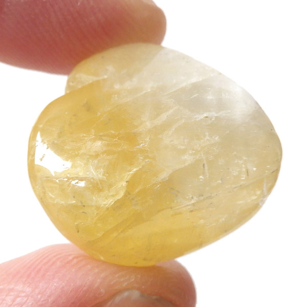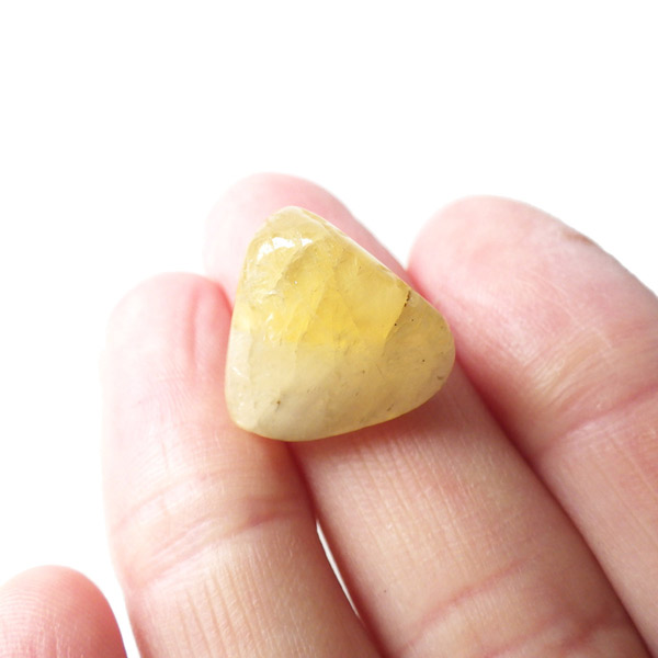 タンザニア産のゴールデンダンビュライト、タンブルです。ダンビュライトと言えば、透明度の高い結晶や、薄いピンク色の結晶がよく知られています。 光の反射が強く、屈折率が高いことから、良質な原石をカットすると水晶やトパーズよりも透明で澄んでいて、かつてダイアモンドの代用品として利用されていたこともあります。ところが、タンザニア産のダンビュライトは 明るいイエローの発色で、塊状で産するのが特徴です。