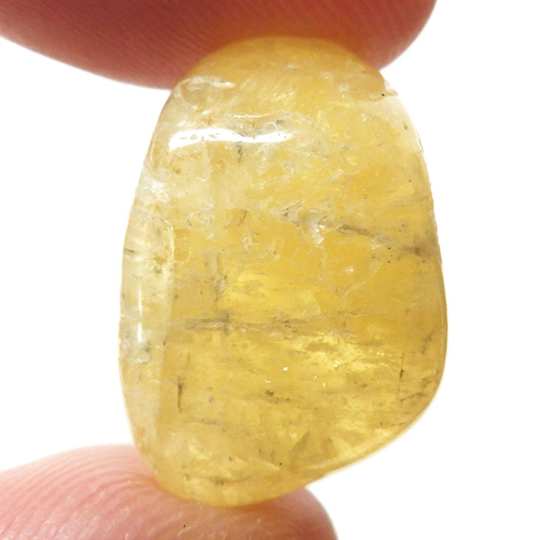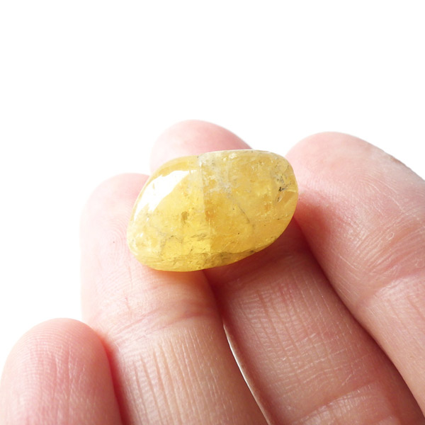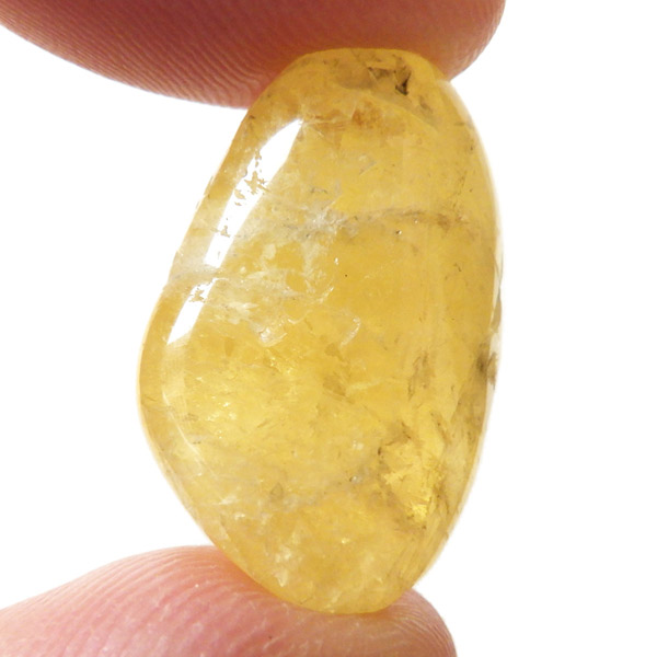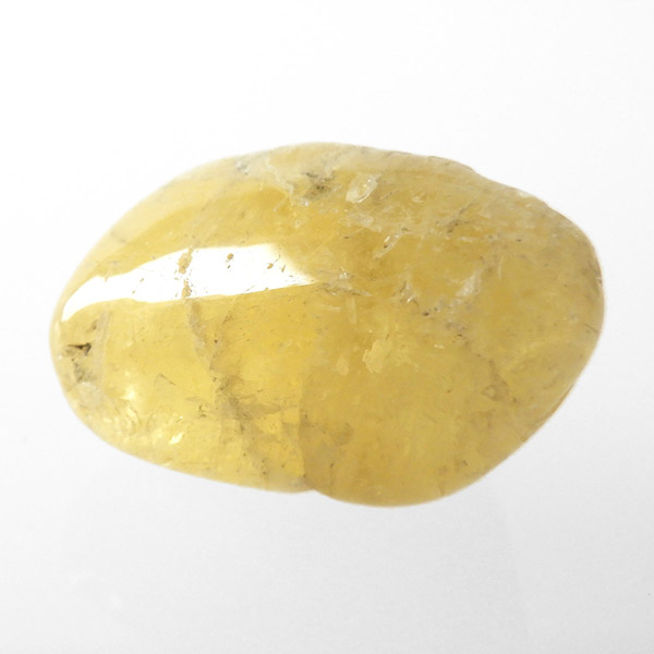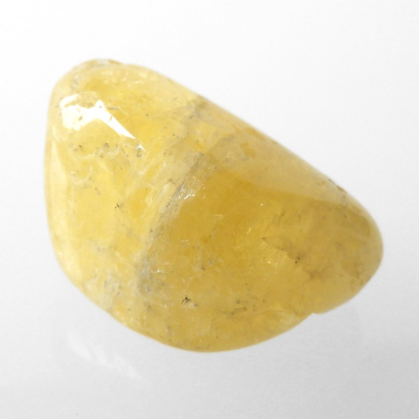 タンザニア産のゴールデンダンビュライト、タンブルです。ダンビュライトと言えば、透明度の高い結晶や、薄いピンク色の結晶がよく知られています。 光の反射が強く、屈折率が高いことから、良質な原石をカットすると水晶やトパーズよりも透明で澄んでいて、かつてダイアモンドの代用品として利用されていたこともあります。ところが、タンザニア産のダンビュライトは 明るいイエローの発色で、塊状で産するのが特徴です。