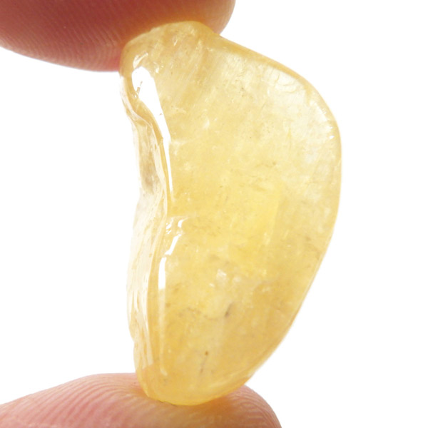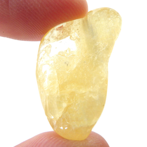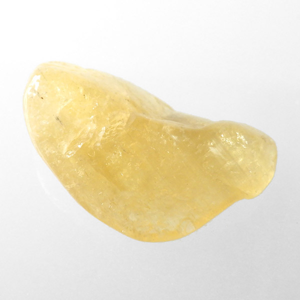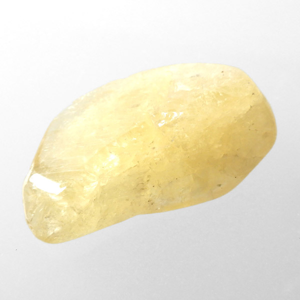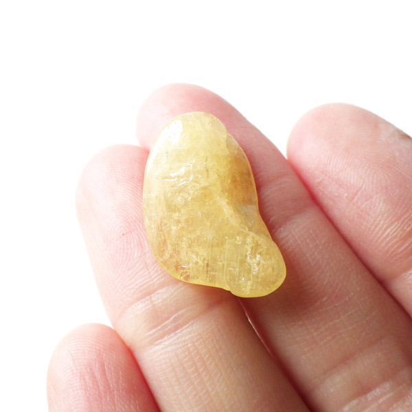 タンザニア産のゴールデンダンビュライト、タンブルです。ダンビュライトと言えば、透明度の高い結晶や、薄いピンク色の結晶がよく知られています。 光の反射が強く、屈折率が高いことから、良質な原石をカットすると水晶やトパーズよりも透明で澄んでいて、かつてダイアモンドの代用品として利用されていたこともあります。ところが、タンザニア産のダンビュライトは 明るいイエローの発色で、塊状で産するのが特徴です。