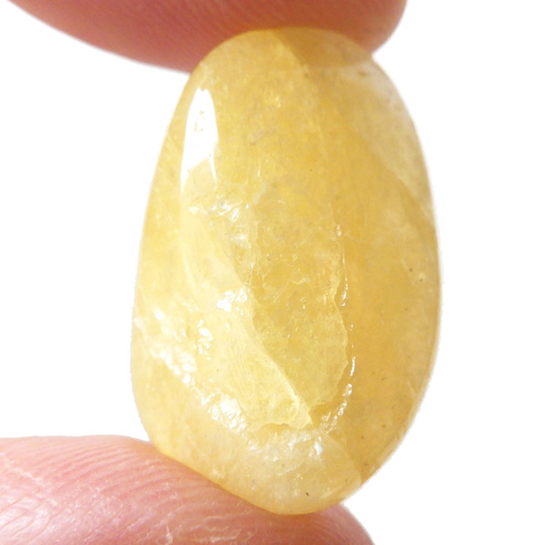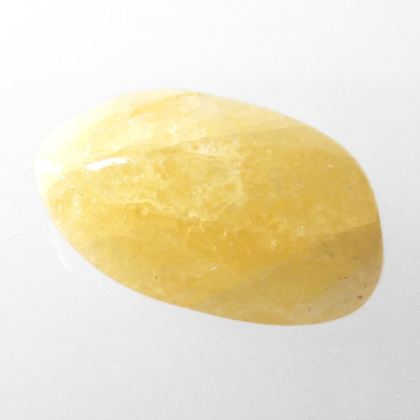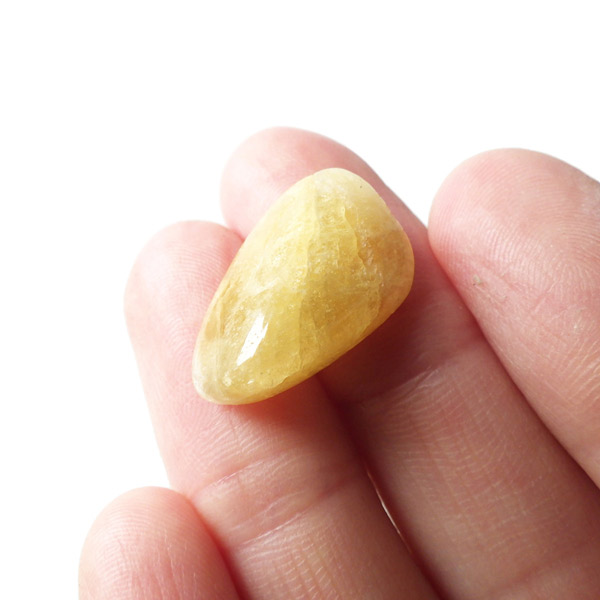 タンザニア産のゴールデンダンビュライト、タンブルです。ダンビュライトと言えば、透明度の高い結晶や、薄いピンク色の結晶がよく知られています。 光の反射が強く、屈折率が高いことから、良質な原石をカットすると水晶やトパーズよりも透明で澄んでいて、かつてダイアモンドの代用品として利用されていたこともあります。ところが、タンザニア産のダンビュライトは 明るいイエローの発色で、塊状で産するのが特徴です。
