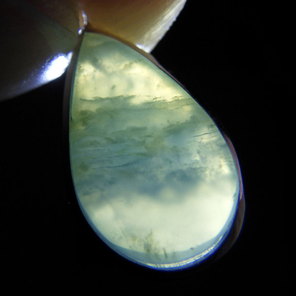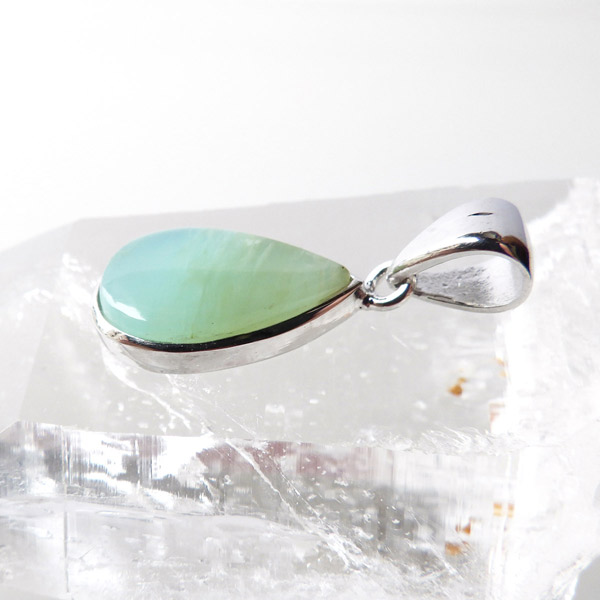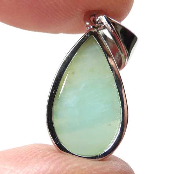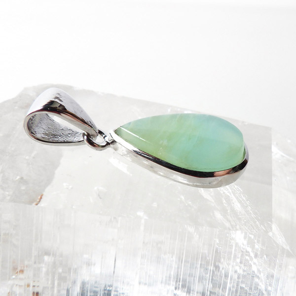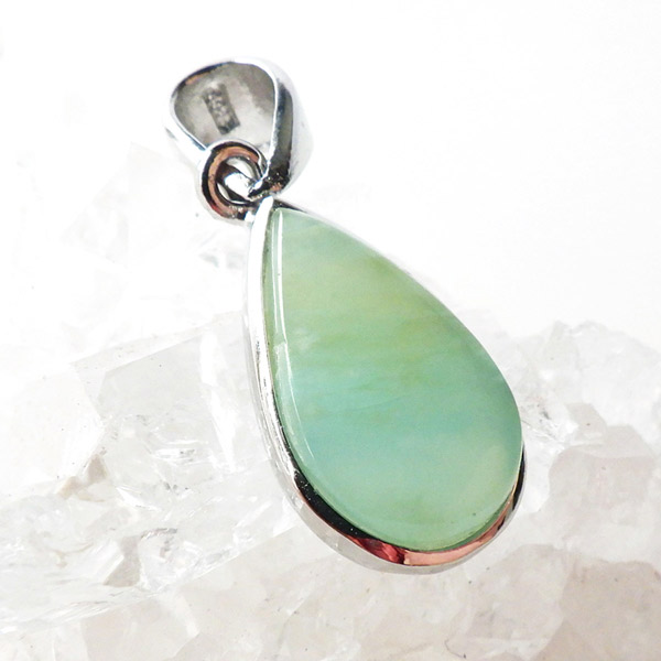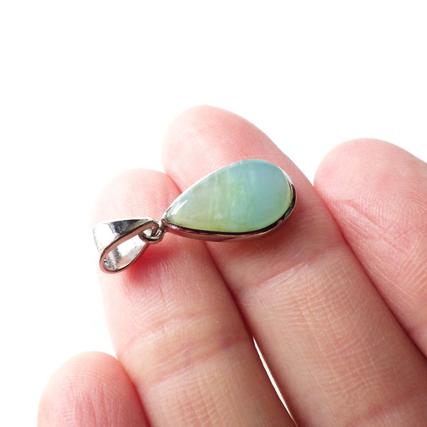 ペルー産グリーンオパールのペンダントトップです。愛らしくやわらかなグリーン色の淡い発色が素晴らしいグリーンオパールを使用しております。グリーンの可愛くやわらかな色は、思わず惹きつけられる魅力のあるパワーストーンです。グリーンオパールは思いやりを持つことができ、人間関係も良好になるといわれています。