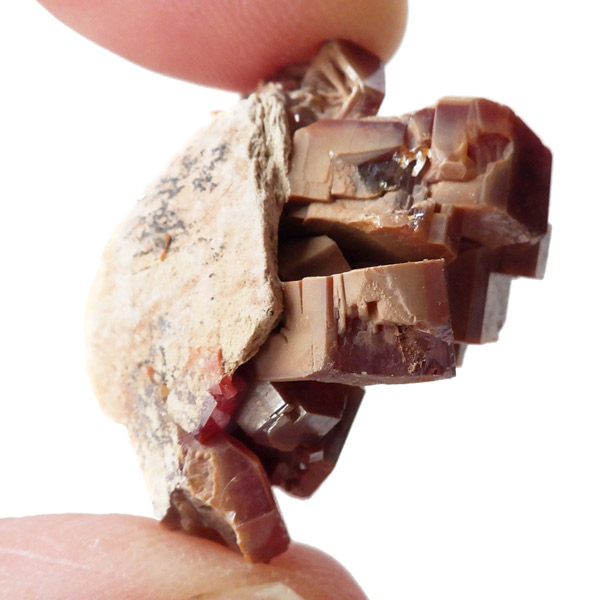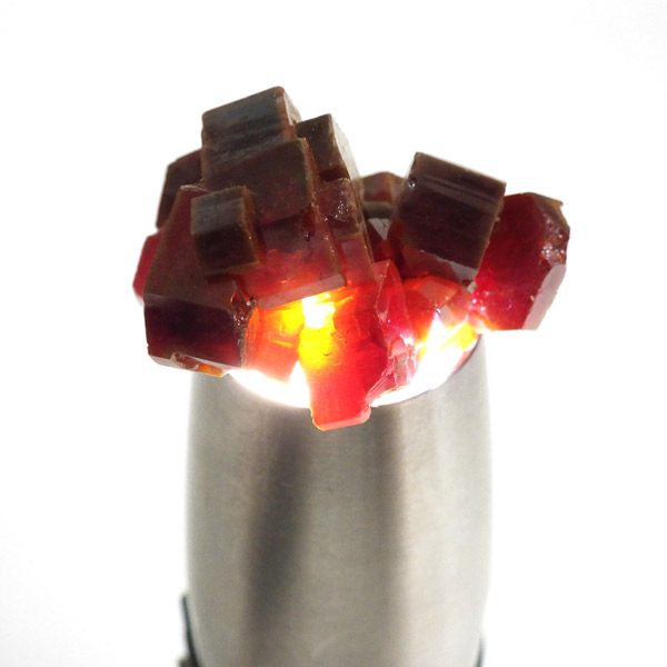 モロッコのミブラーデン鉱山より産出されたバナジナイト原石です。非常に高品質な結晶を有しています。 バナジナイトは、とても明るいオレンジ色や、濃い赤色、ワインレッドなどの色があります。 美しい六角板状の結晶は、艶やかな表面から光を非常によく反射させ、キラキラと大変魅力的です。