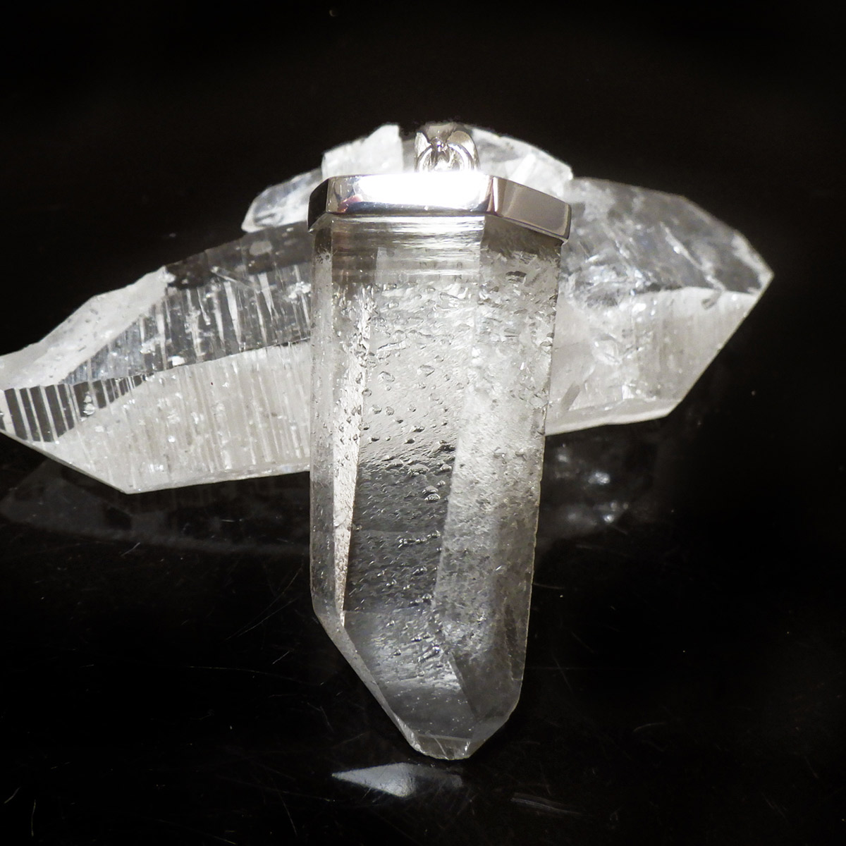 ブラジル・ミナスジェライス州・コリント・ゼカ産の水晶ペンダントトップです。 圧倒的な透明感、原石の美しさをそのままペンダントトップのアクセサリーに仕上げました。 ゼカクリスタル、ゼッカクリスタル、ヴィジョンクォーツとも呼ばれており、鋭いひらめきを与えると言われています。