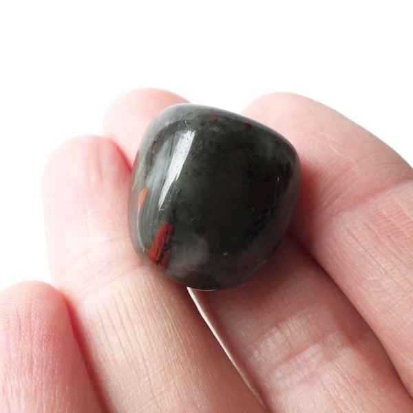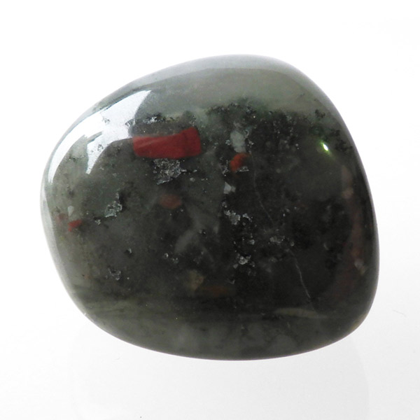 エスワティニ産のセフトナイト、タンブルです。セフトナイトまたはヴァルカンジャスパーと呼ばれております。セフトナイトはマーカサイトの成分を含むカルセドニーとシャスパーの混合石です。赤い斑点は鉄分によるものです。インド産のブラッドストーンに似ていることから、流通名としてアフリカンブラッドストーンとも呼ばれております。