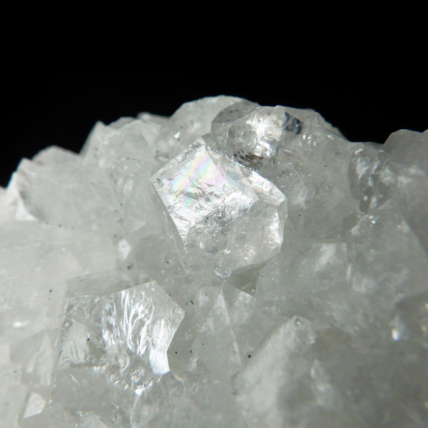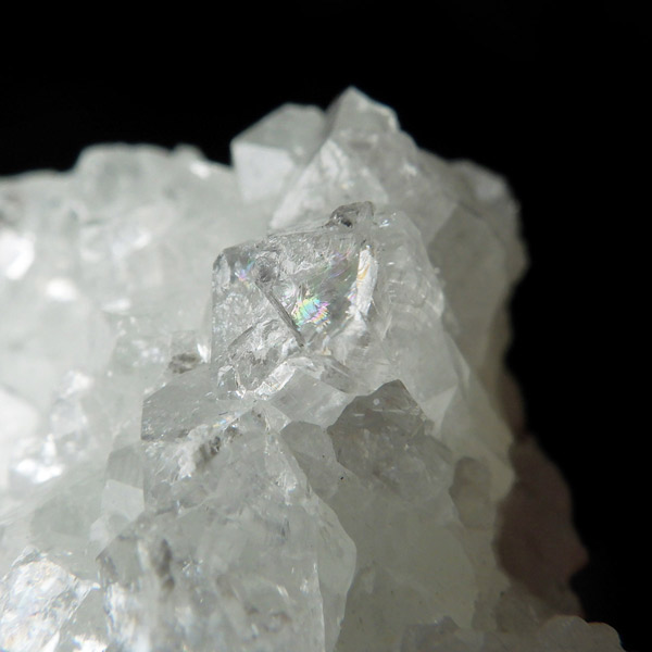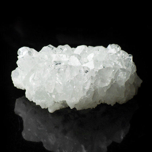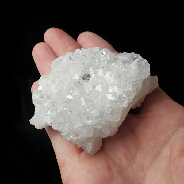 インド、プネー産のかわいいサイズのアポフィライト原石です。 アポフィライトは、柱状や正方錘状の結晶を持ち、ひとつひとつの結晶が複雑に入り組んだ群晶が水晶とは違う神々しい輝きを魅せてくれます。こちらの結晶は光沢があり、平面にびっしりと全体的に結晶しています。心が洗われるようなピュアなクリア。レインボーもチラッとギラギラっと数か所に見られます。透明度が非常に高く、キラキラと輝き神秘的でとてもきれいでおすすめです。