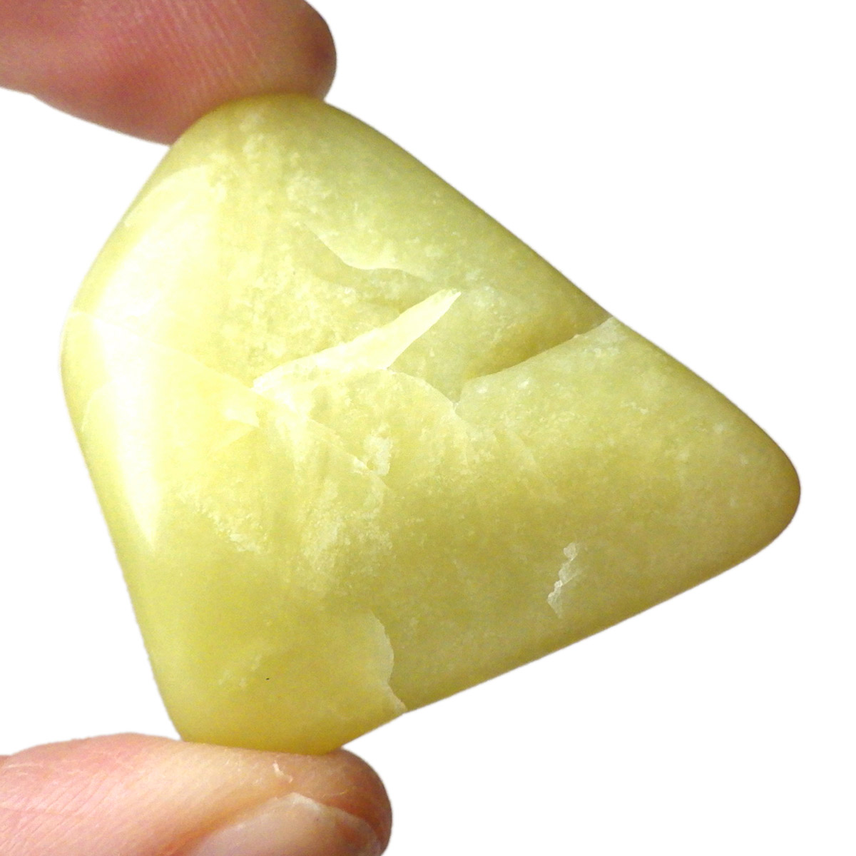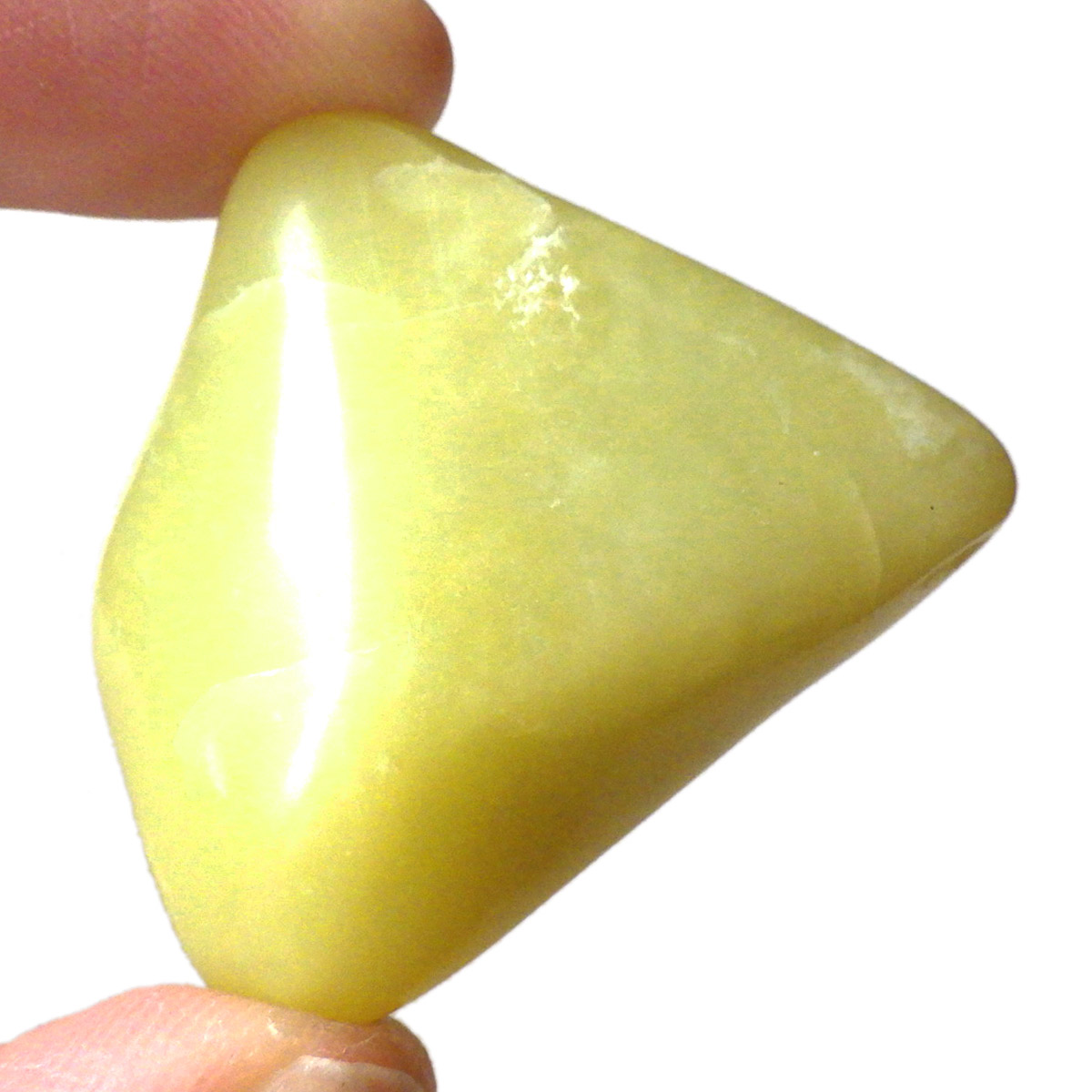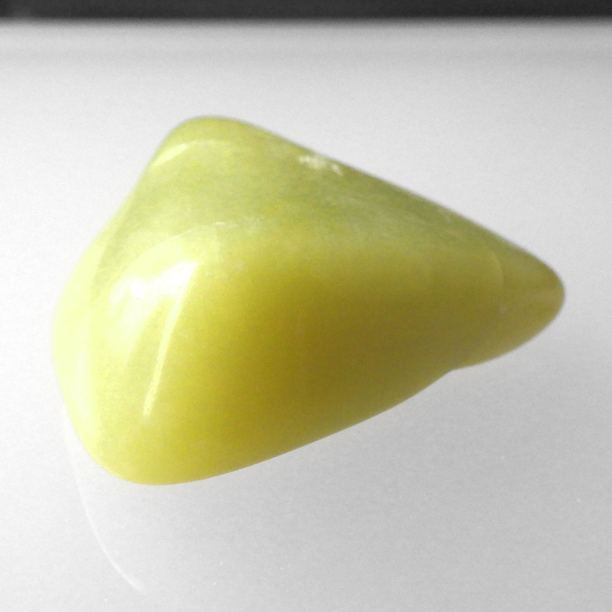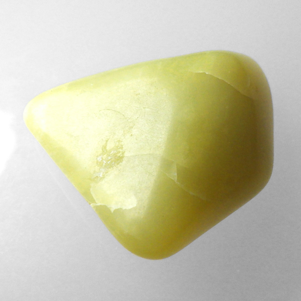 アメリカ・ワシントン州産のワシントンサーペンティン(ヒーラーライト)、タンブルです。 ワシントンサーペンティン(ヒーラーライト)は、明るいライムグリーン色をしており、やわらかな感触があります。 パッと見た感じは黄色の印象が強いと思いますが、良く見てみると黄色ではなくもっと複雑で独特の色合いをしていることが分かります。 アメリカの北西部で新しく発見されたケイ酸マグネシウムで、マグネサイト鉱脈から、マグネサイトと一緒に発掘されます。