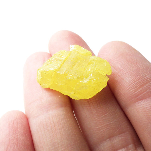 ロシア産、サルファーの原石です。サルファーは和名で硫黄。サルファーは黄色の鉱物で、火山の火口や、温泉の噴出孔付近から産出します。サルファーは、マグネシウムが豊富な環境で多く見られます。硫黄は多くの同素体や結晶系があるので同じ硫黄でもいろいろな形状があります。きれいな結晶のロシア産のサルファーは大変希少です。艶やかなガラスのような光沢のイエローで、混じりっ気のないきれいな結晶が特徴的です。