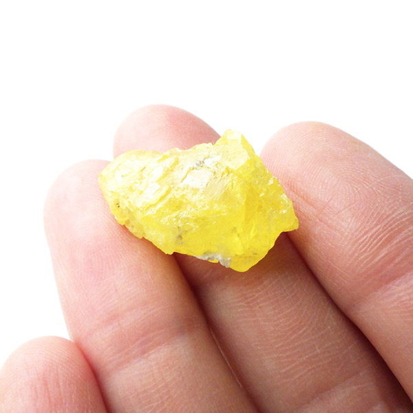 ロシア産、サルファーの原石です。サルファーは和名で硫黄。サルファーは黄色の鉱物で、火山の火口や、温泉の噴出孔付近から産出します。サルファーは、マグネシウムが豊富な環境で多く見られます。硫黄は多くの同素体や結晶系があるので同じ硫黄でもいろいろな形状があります。きれいな結晶のロシア産のサルファーは大変希少です。艶やかなガラスのような光沢のイエローで、混じりっ気のないきれいな結晶が特徴的です。