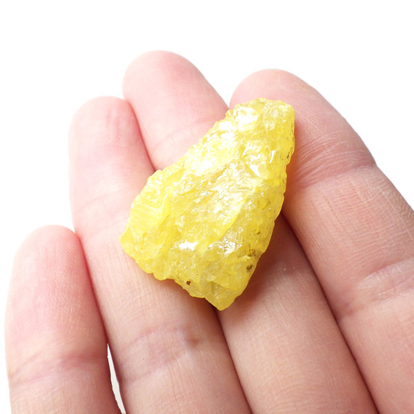 ロシア産、サルファーの原石です。サルファーは和名で硫黄。サルファーは黄色の鉱物で、火山の火口や、温泉の噴出孔付近から産出します。サルファーは、マグネシウムが豊富な環境で多く見られます。硫黄は多くの同素体や結晶系があるので同じ硫黄でもいろいろな形状があります。きれいな結晶のロシア産のサルファーは大変希少です。艶やかなガラスのような光沢のイエローで、混じりっ気のないきれいな結晶が特徴的です。