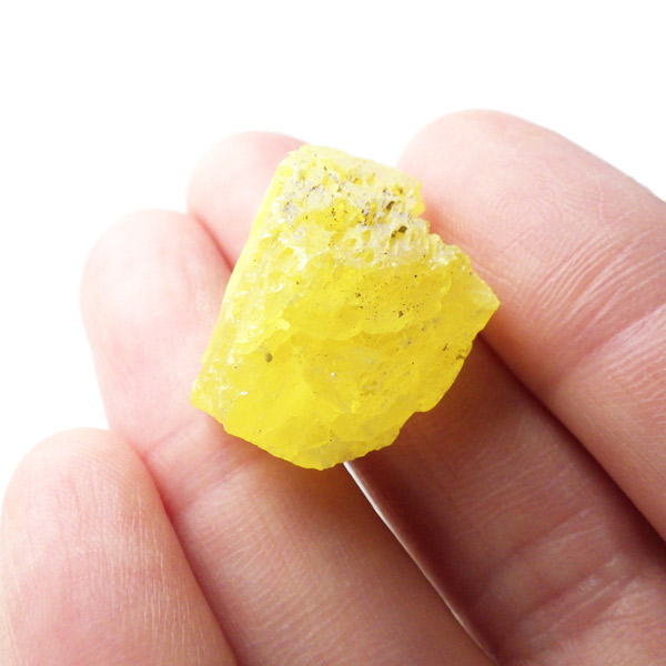 ロシア産、サルファーの原石です。サルファーは和名で硫黄。サルファーは黄色の鉱物で、火山の火口や、温泉の噴出孔付近から産出します。サルファーは、マグネシウムが豊富な環境で多く見られます。硫黄は多くの同素体や結晶系があるので同じ硫黄でもいろいろな形状があります。きれいな結晶のロシア産のサルファーは大変希少です。艶やかなガラスのような光沢のイエローで、混じりっ気のないきれいな結晶が特徴的です。