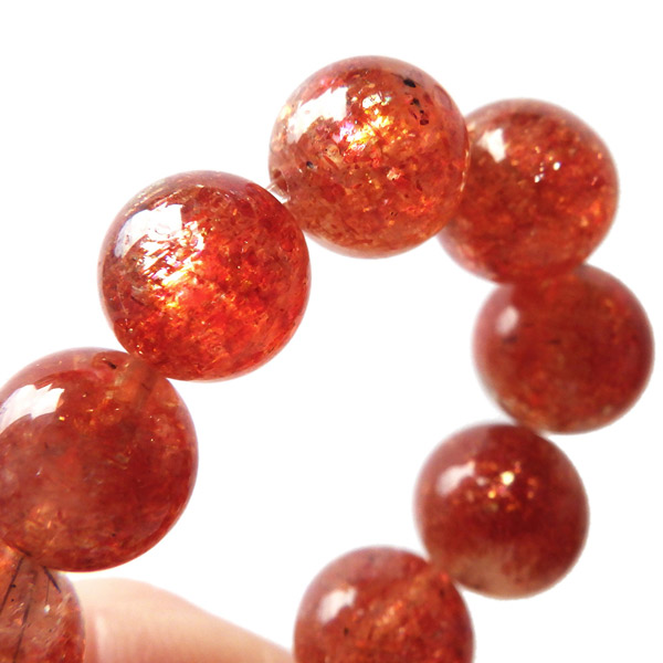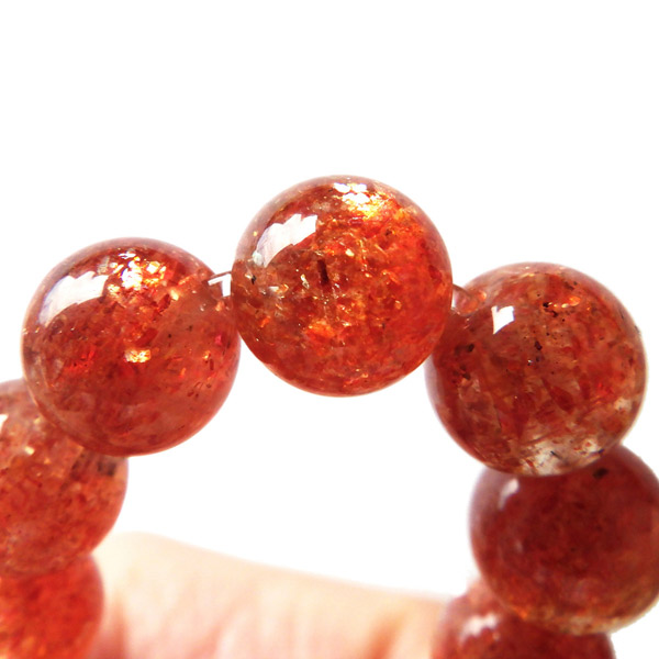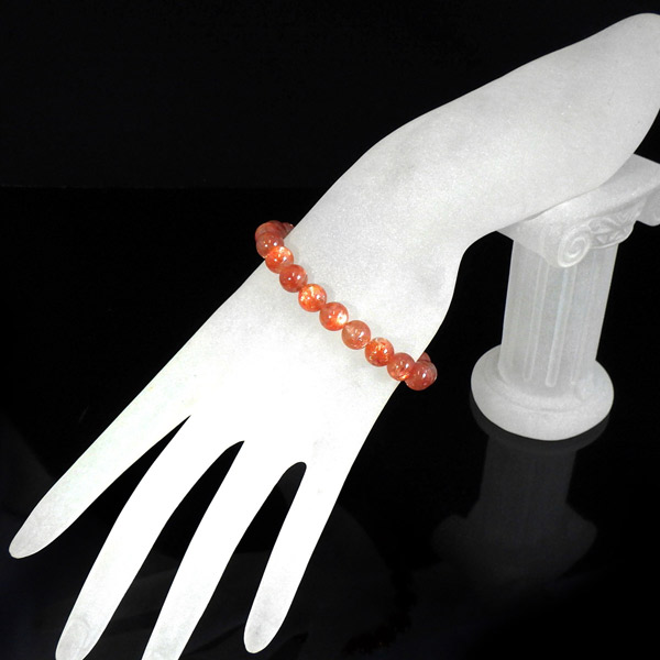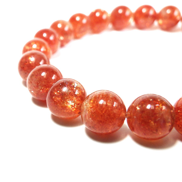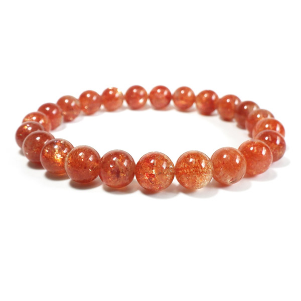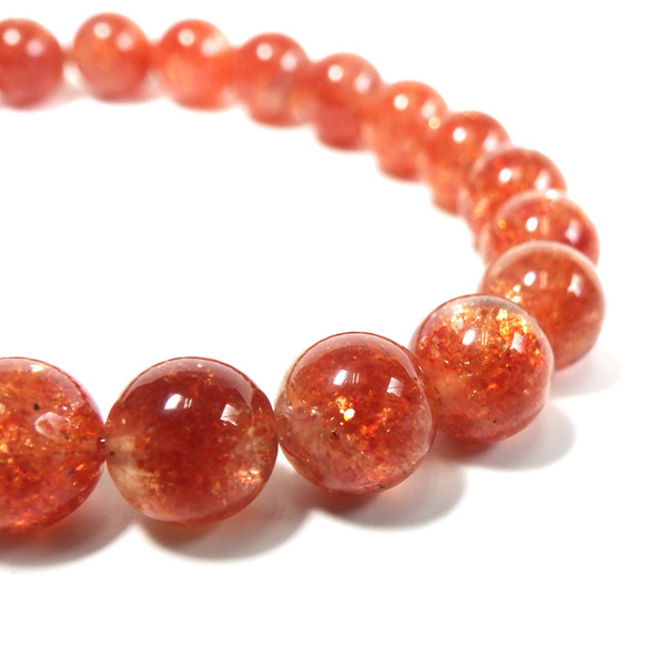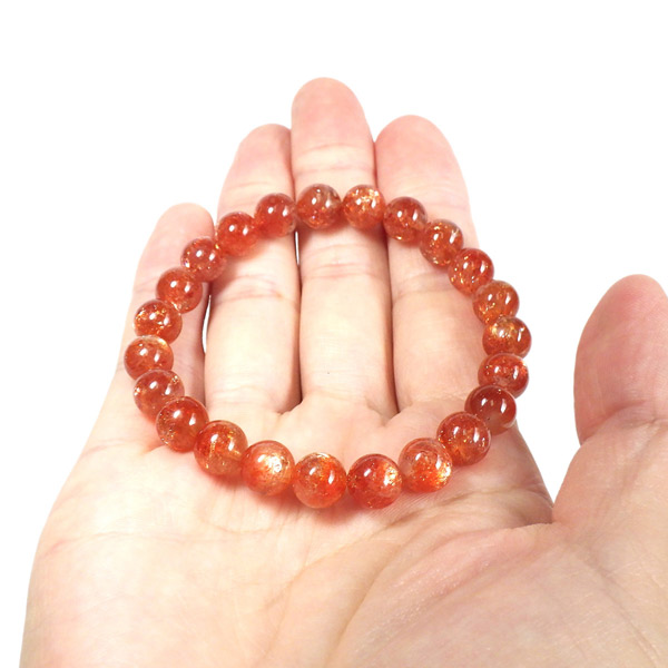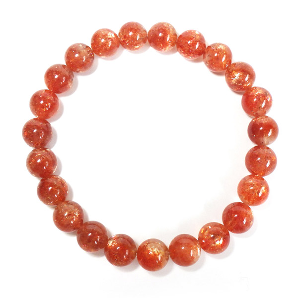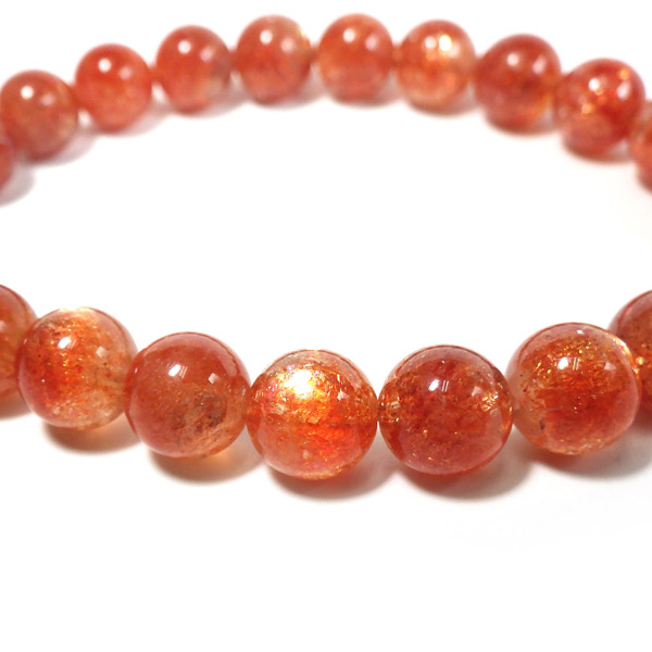 タンザニア産サンストーンを使用したブレスレットです。灼熱の太陽を彷彿とする、オレンジ色のキラキラした輝きが特徴です。ヘマタイトのオレンジ色と、マイカの織りなすキラキラがアクティブな心を刺激してくれます。