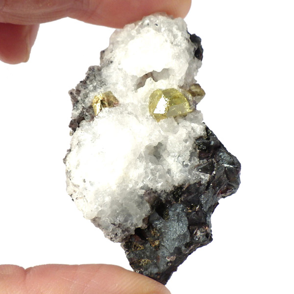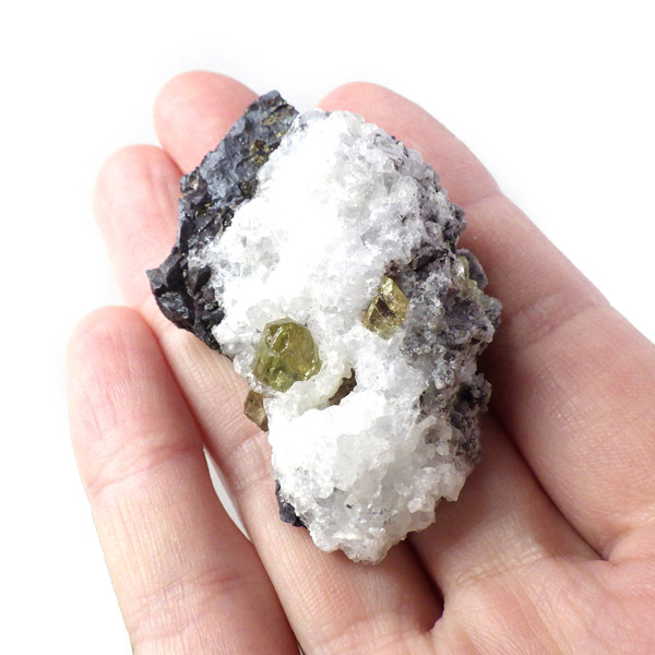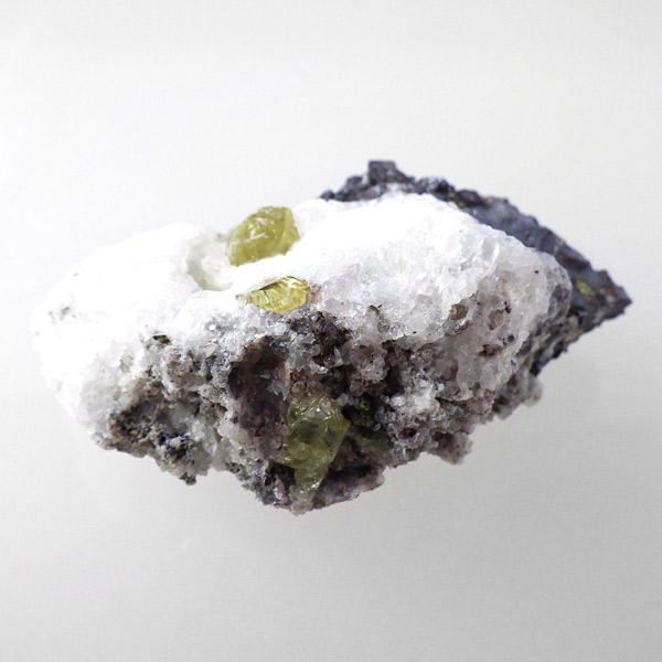 メキシコ産イエローアパタイトの母岩付き結晶原石です。