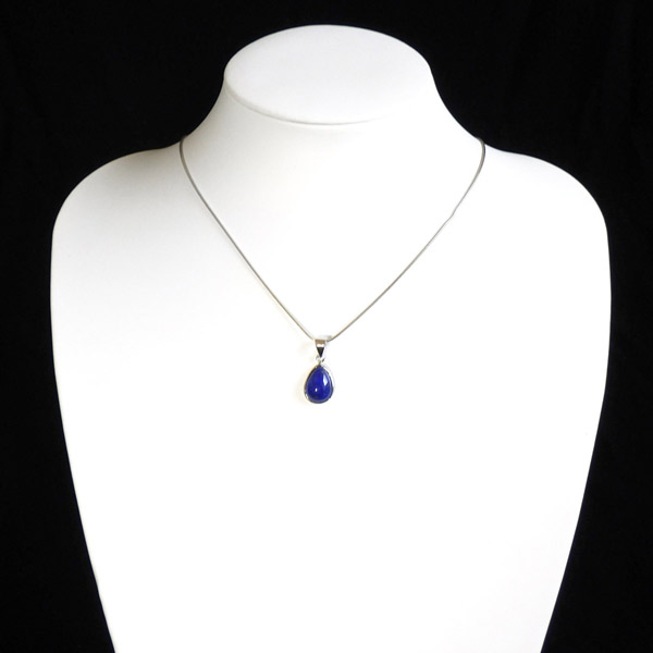 ラピスラズリは、ラズライト・アウィン・ソーダライト・ノーゼライトが集合したものです。特に、ラズライトとノーゼライトを多く含有すると、深く美しい色彩のラピスラズリとなります。全体的に均一な色彩のものは少ないのですが、特に良い面をペンダントトップの表面にくるように加工しております。