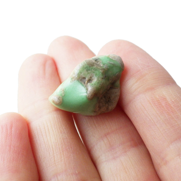 アメリカ・ユタ州産のバリサイトのタンブルです。バリサイトは、グリーンを基調に天然の模様が見られる石で、色合いも優しいパステルグリーンから、色鮮やかなグリーンまで様々です。アメリカのユタ山脈から採掘される事から「ユタライト・ユタターコイズ・ユタトルコ」と呼ぶこともあるようです。緑色に黒や白のまだら模様が入る事が多く、品質の良いものになるとクリソプレーズや翡翠のような美しい緑色をしております。